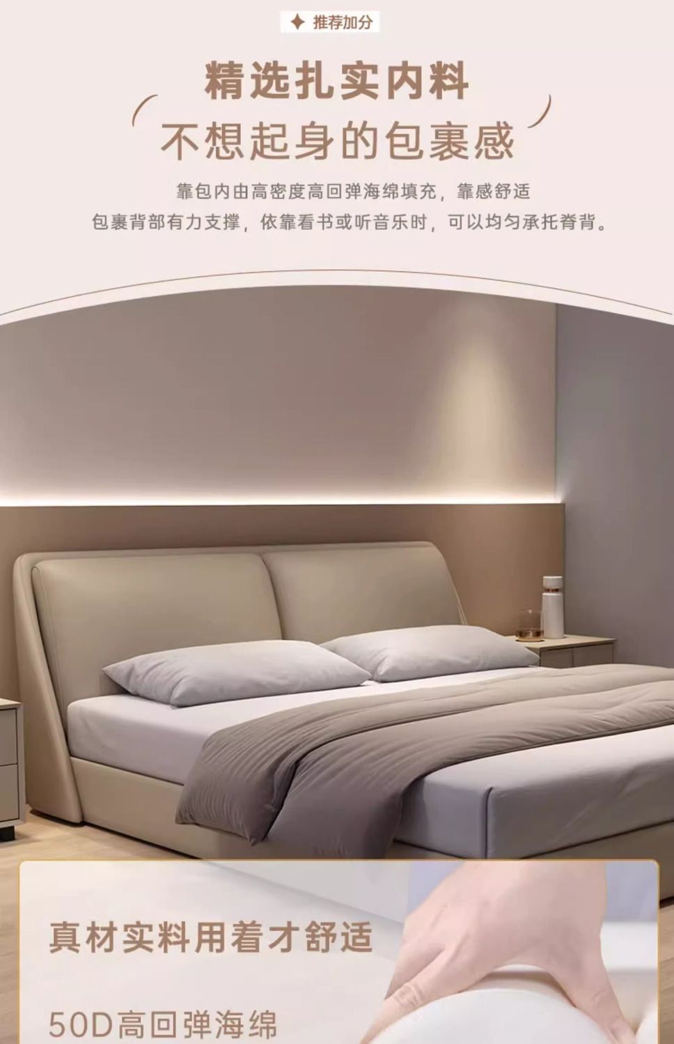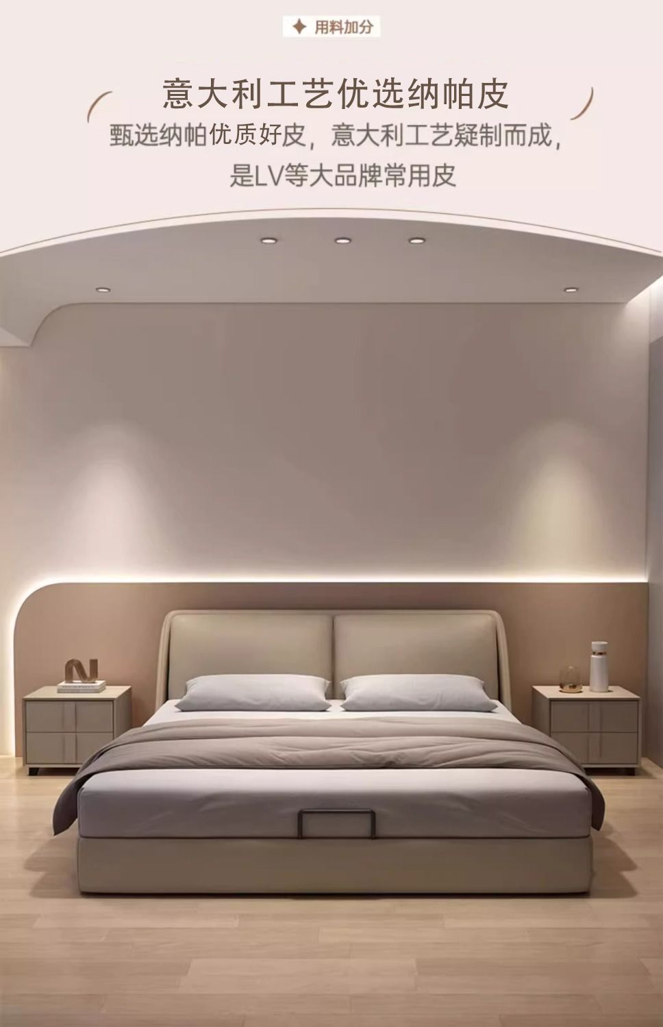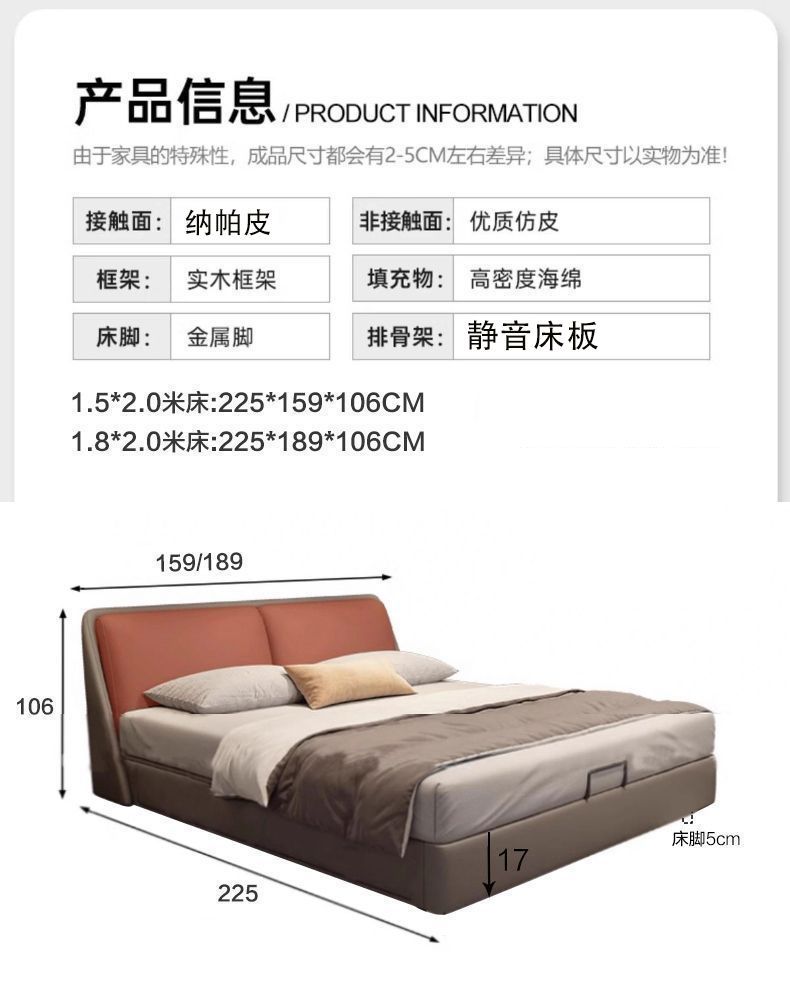 • 나파 가죽 침대 + 무소음 침대 보드(다양한 색상 가능)