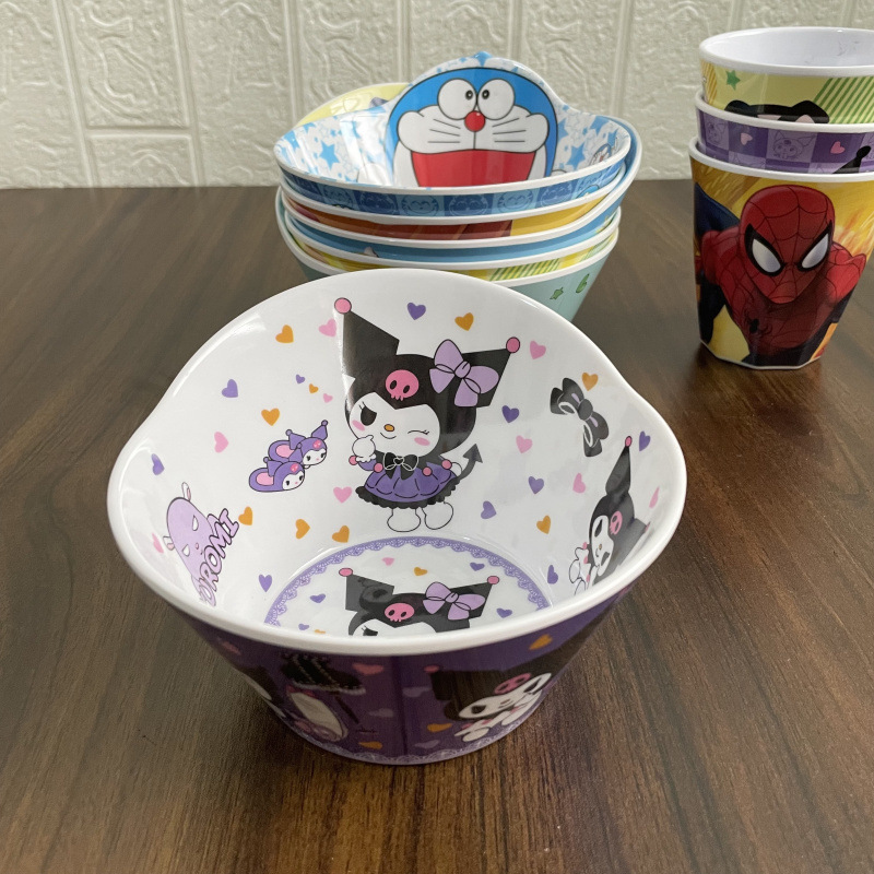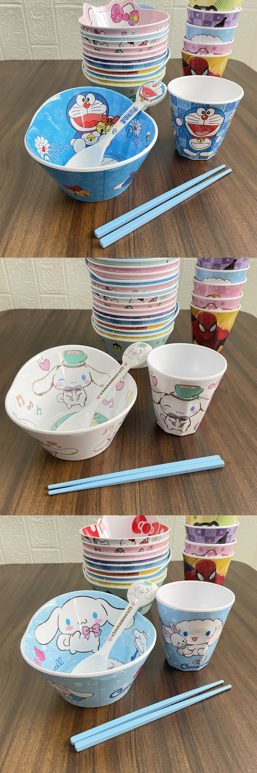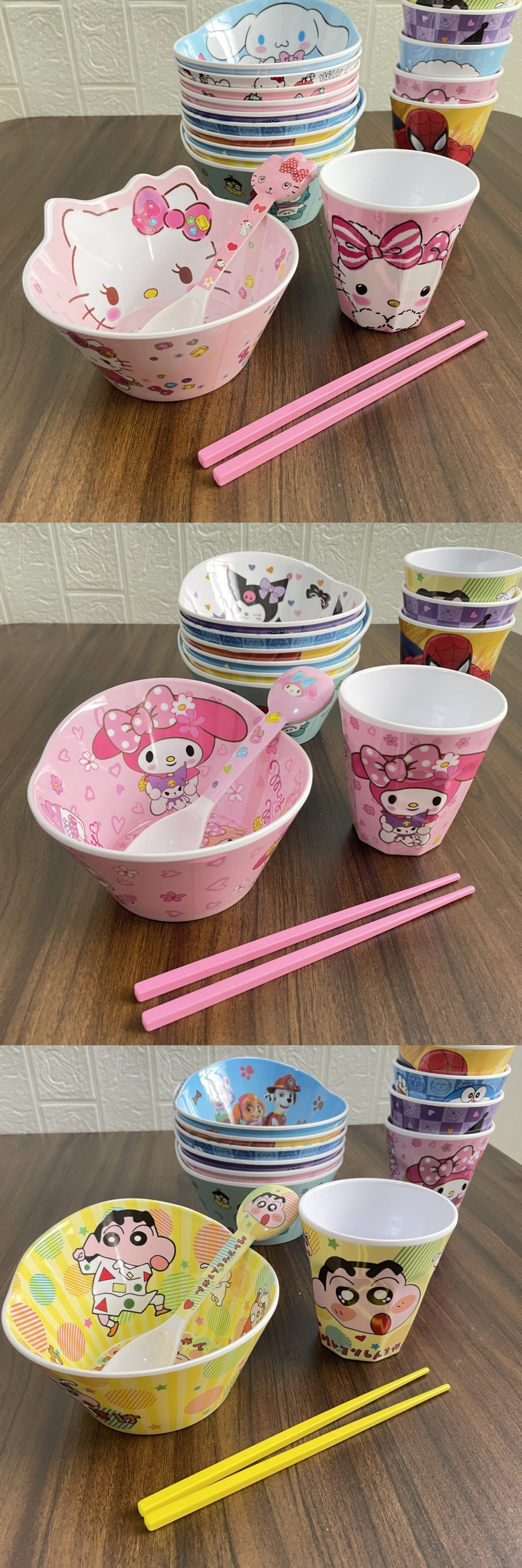 새로운 쿠로미 어린이 그릇, 아기 특수 낙하 방지 및 화상 방지 밥 그릇, 기숙사 학생 그릇, 물컵, 스푼, 식기 세트