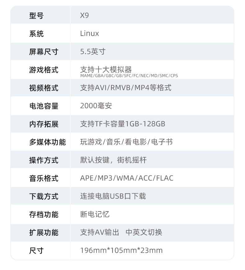 • X9(8G 메모리 카드 3500 게임)