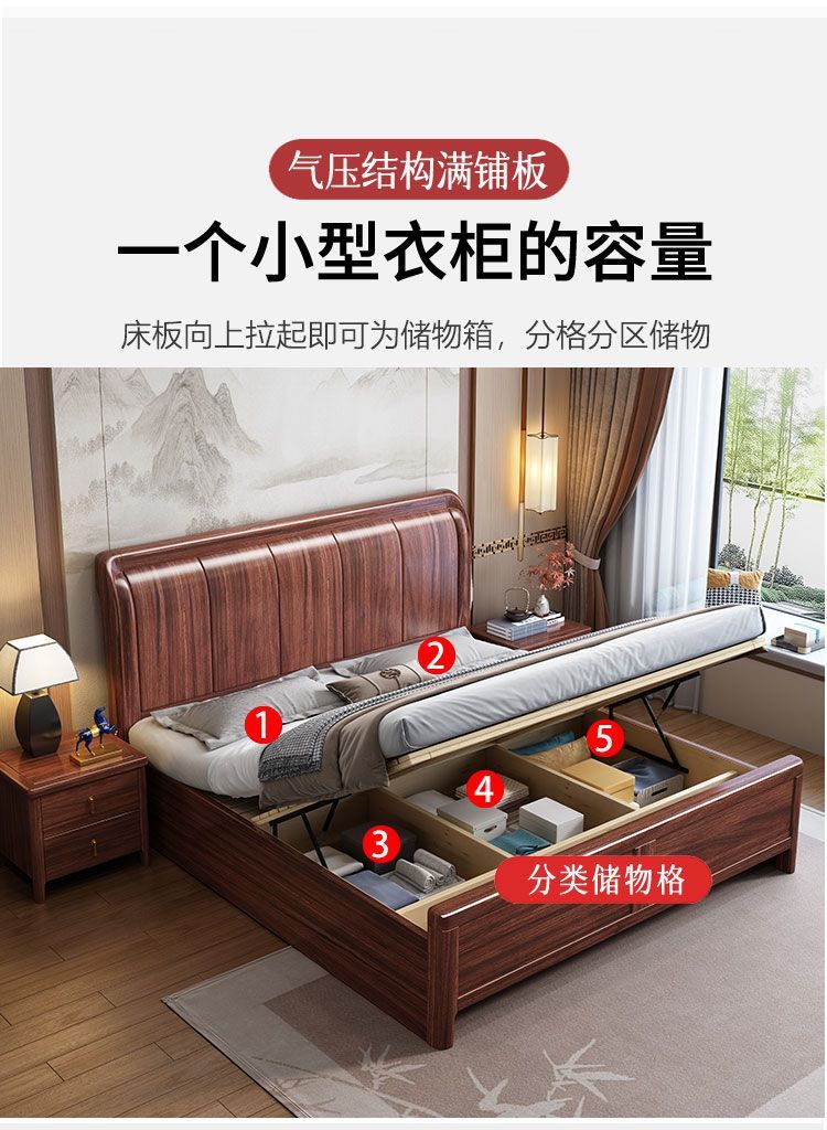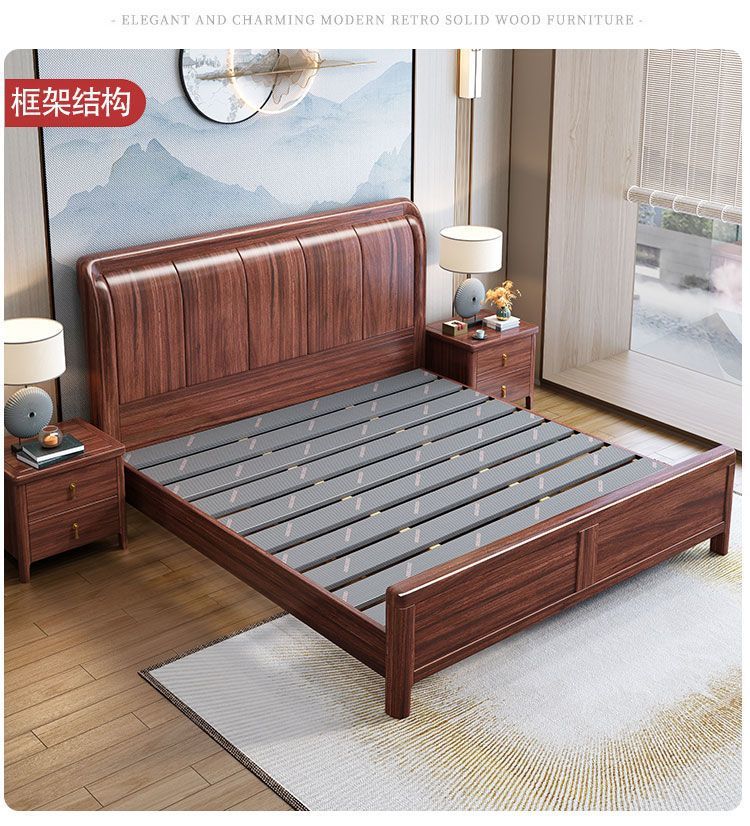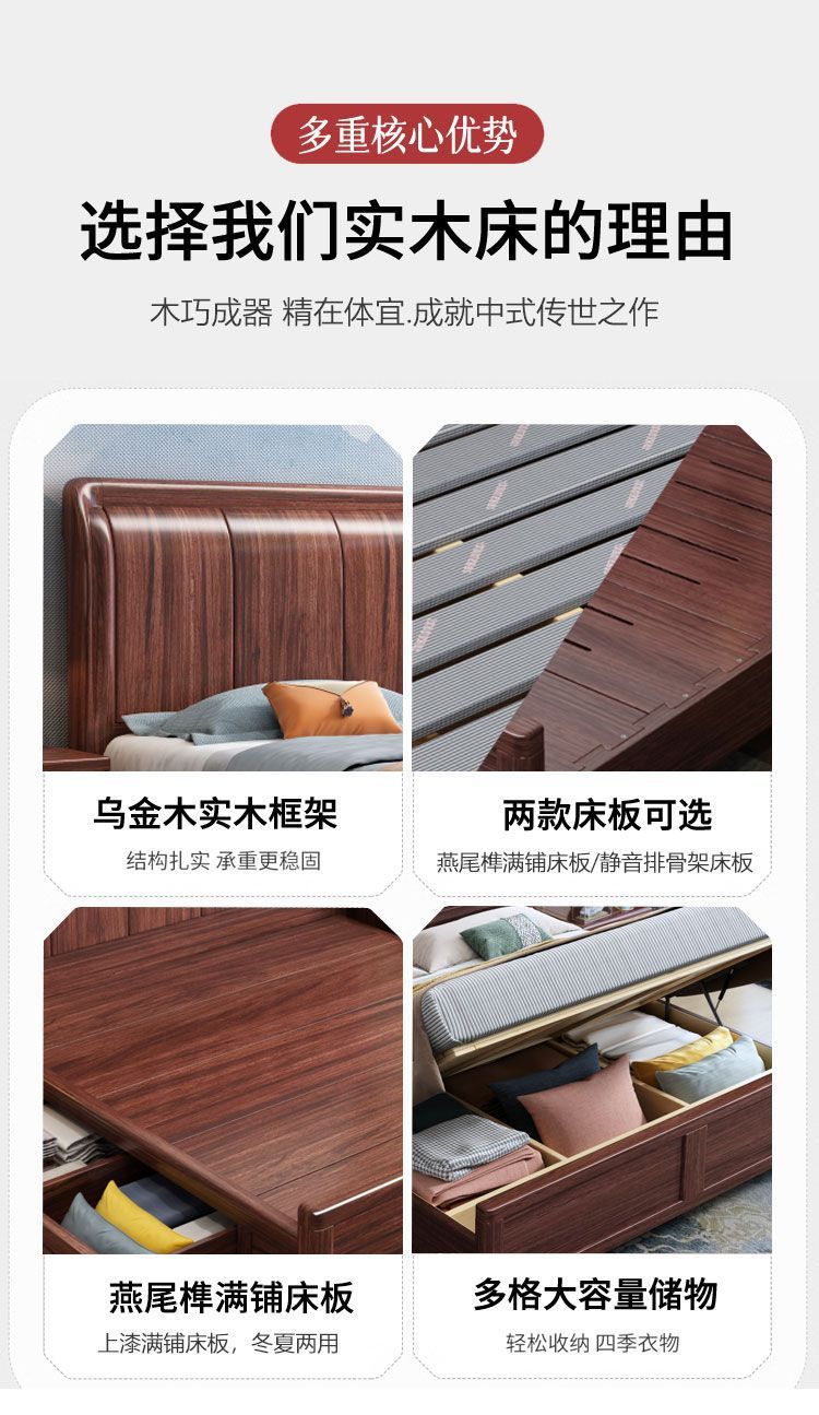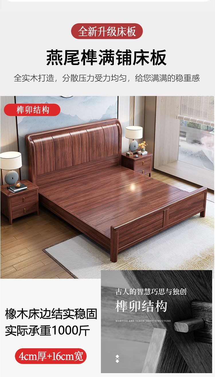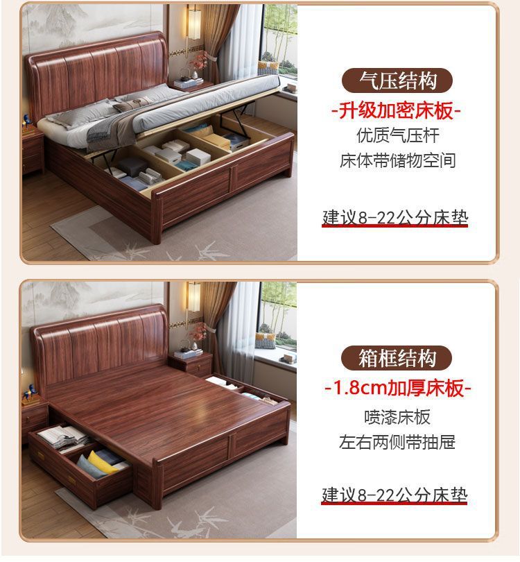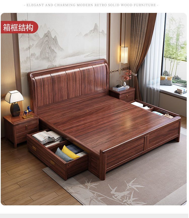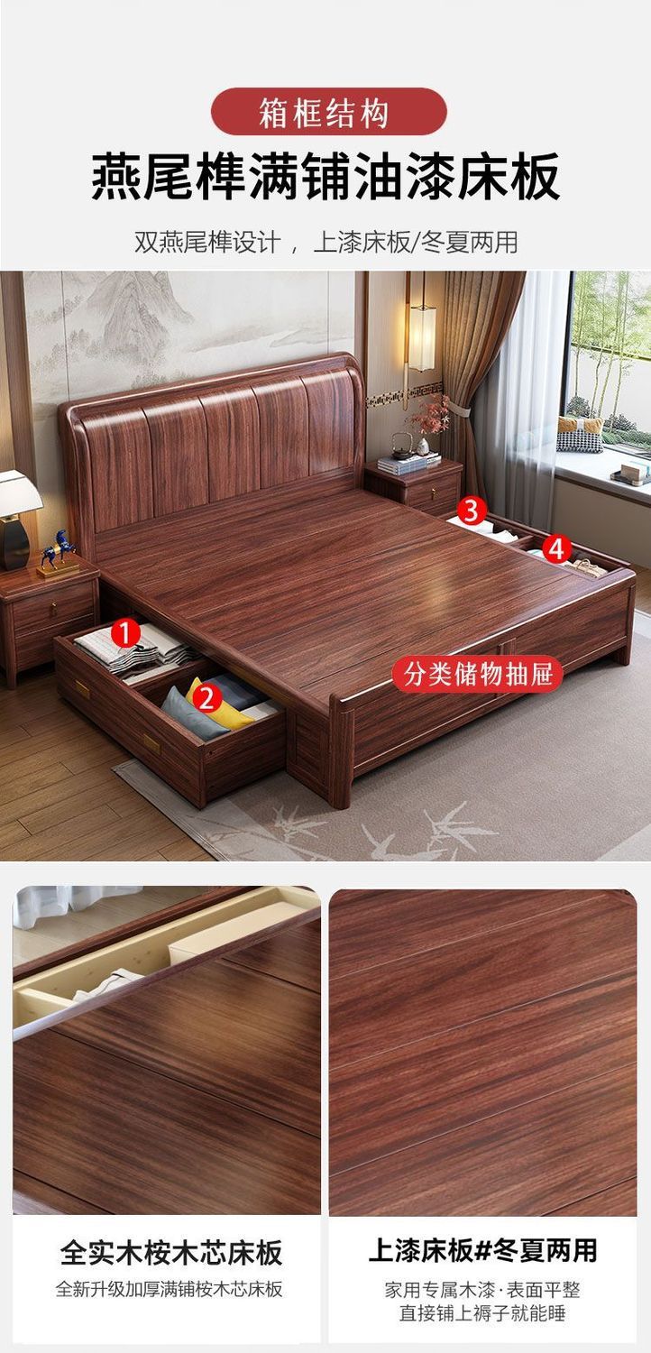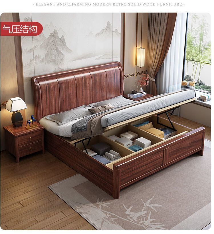 우드우드 신중국식 원목 침대 1.5m 수납 싱글 침대 1.8m 라이트 럭셔리 올드 스타일 모따구 더블 웨딩 침대