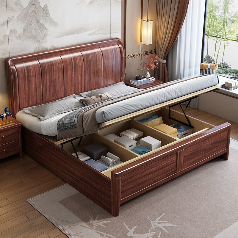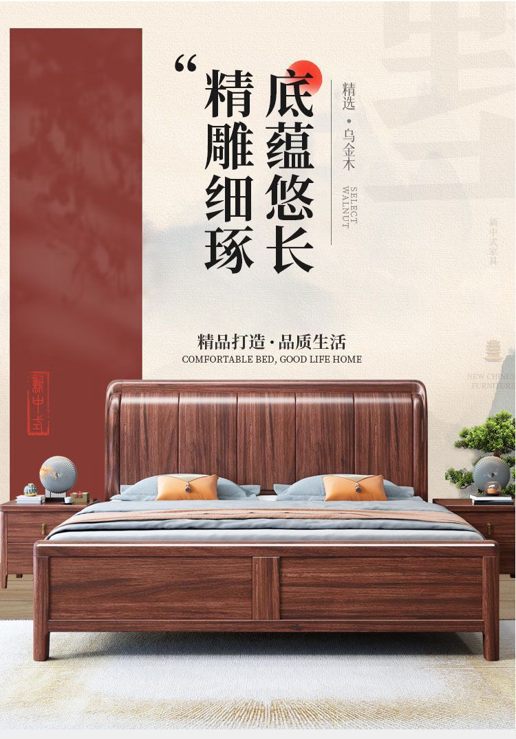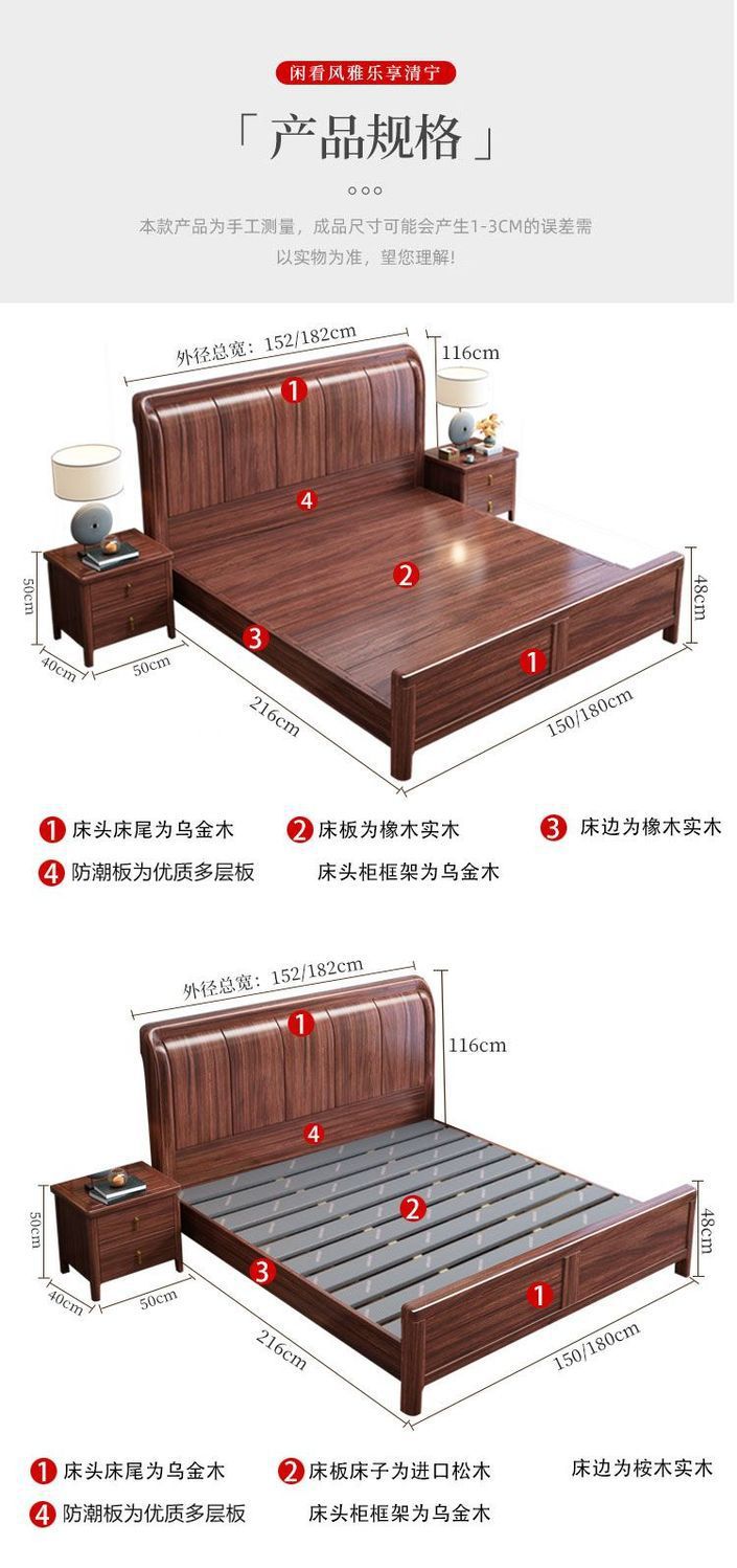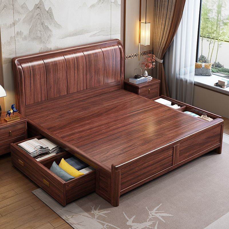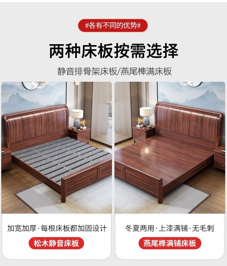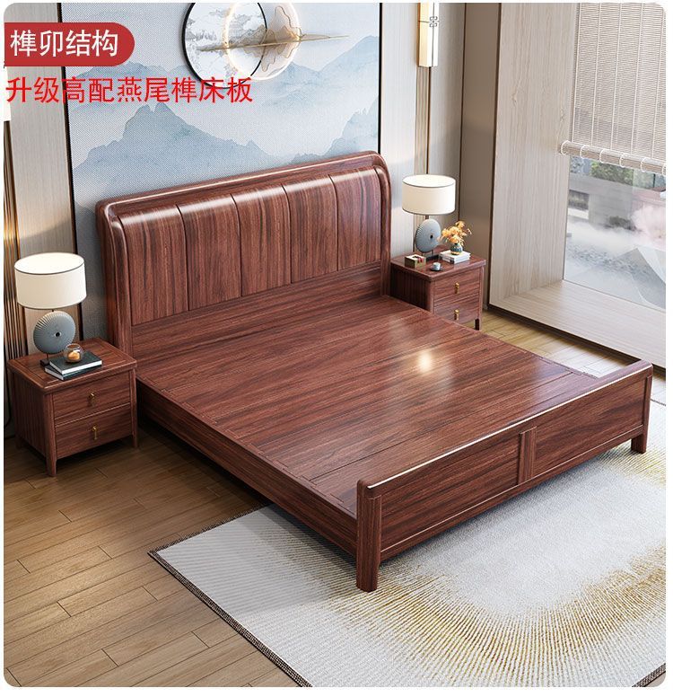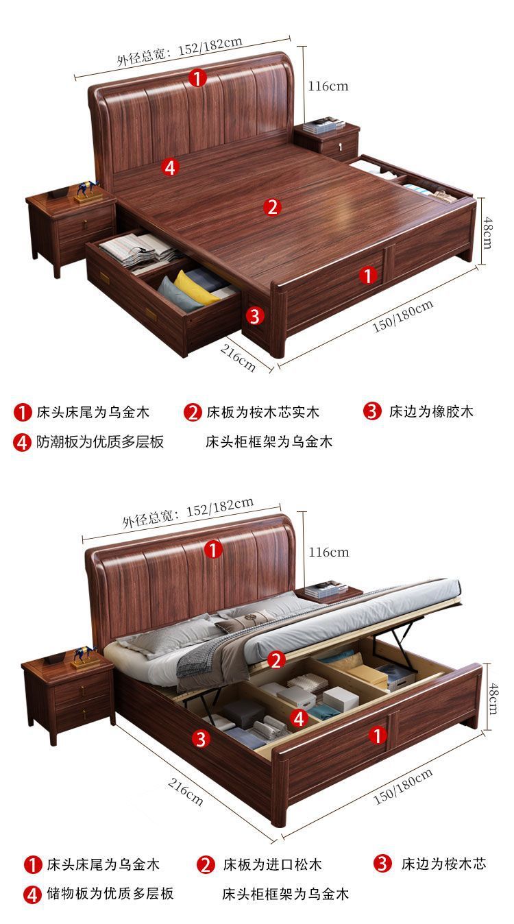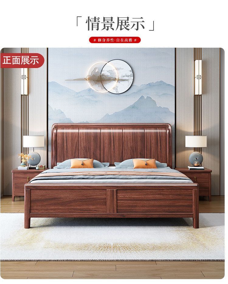 우드우드 신중국식 원목 침대 1.5m 수납 싱글 침대 1.8m 라이트 럭셔리 올드 스타일 모따구 더블 웨딩 침대