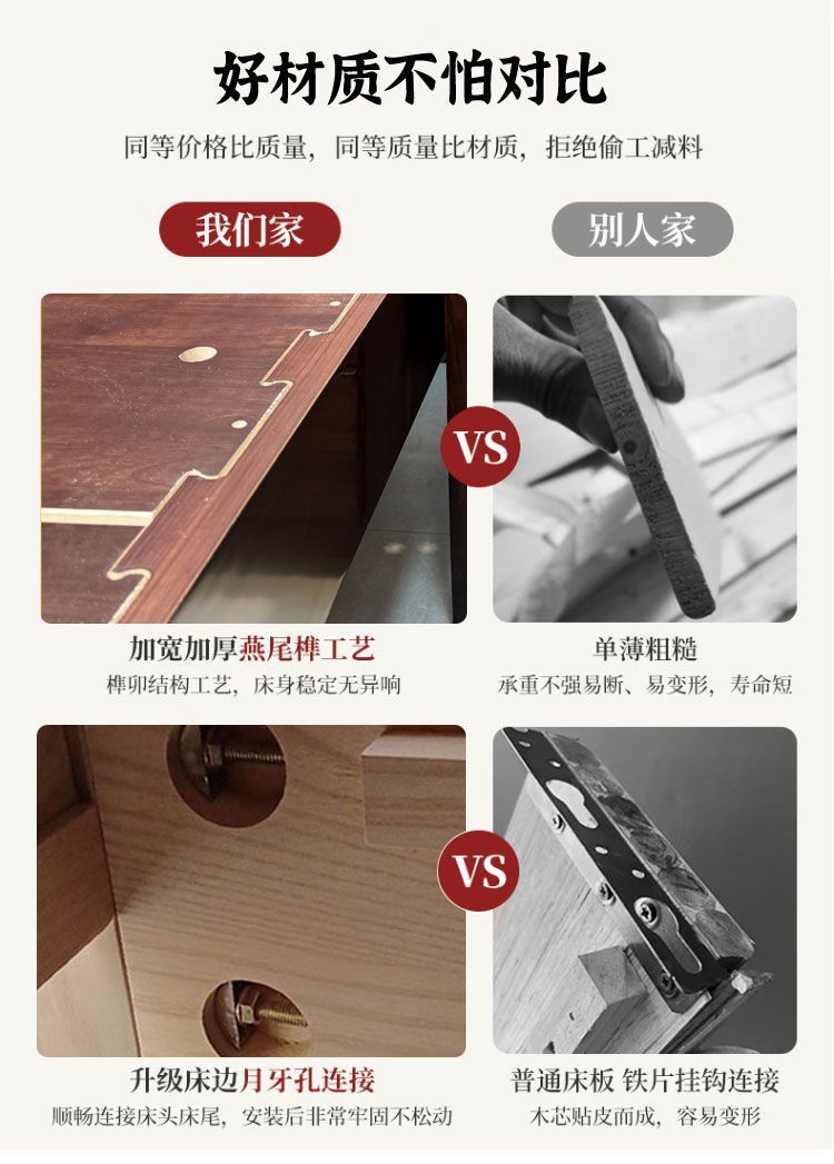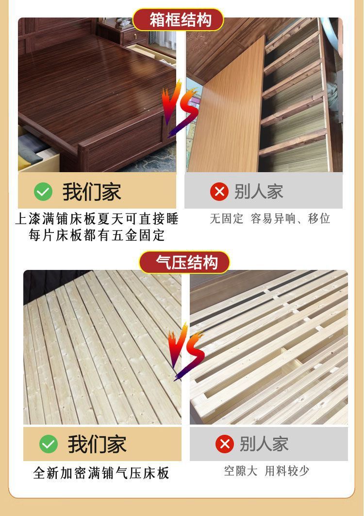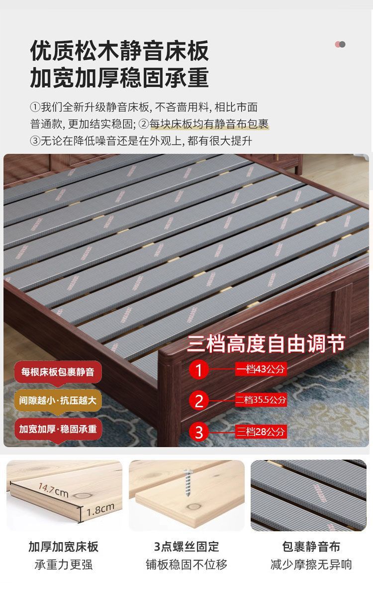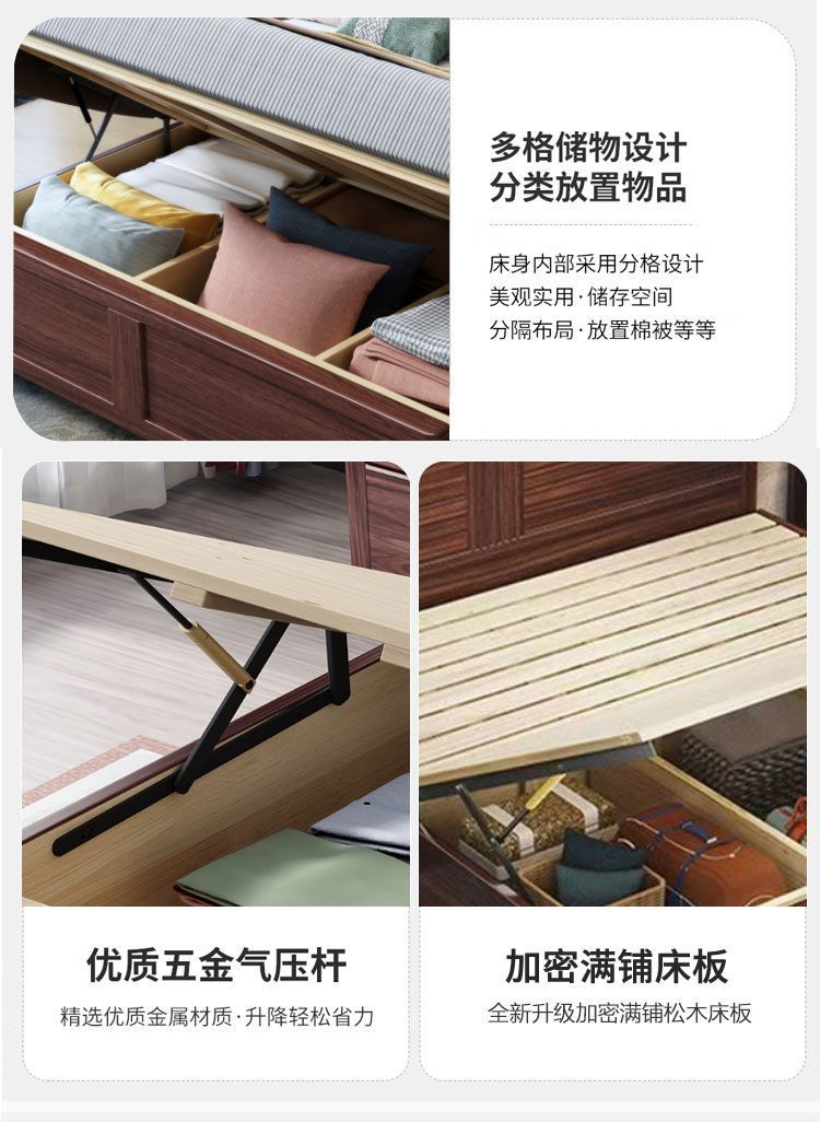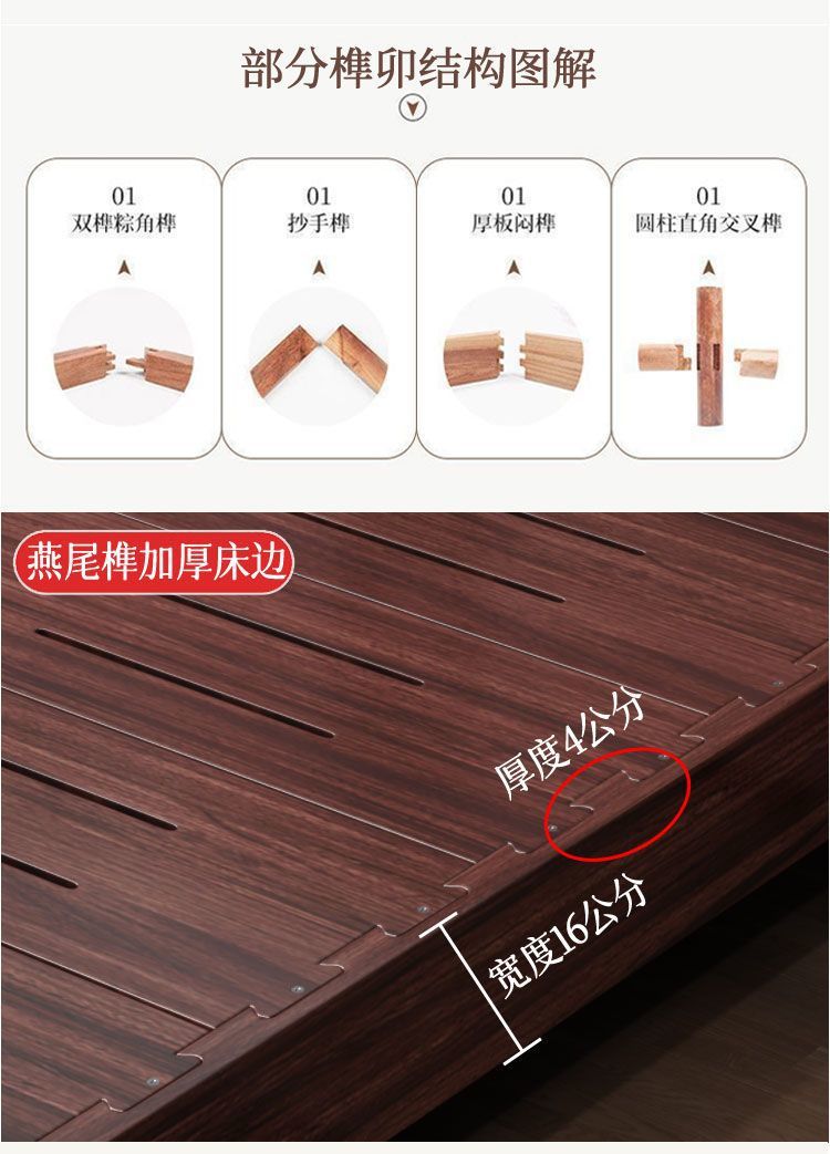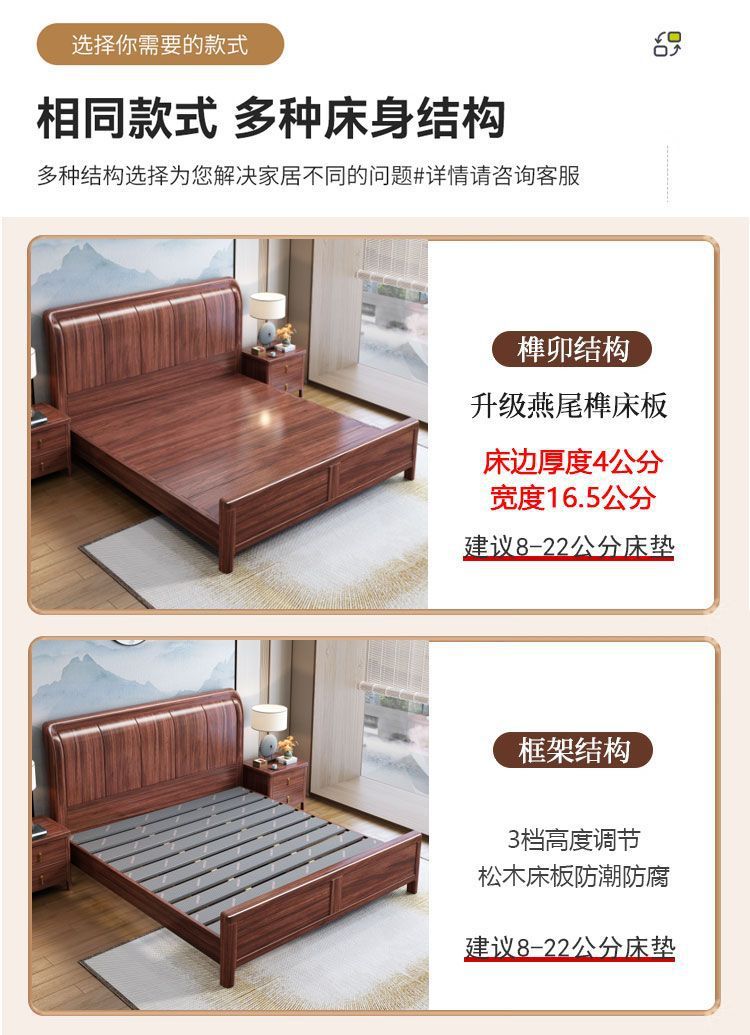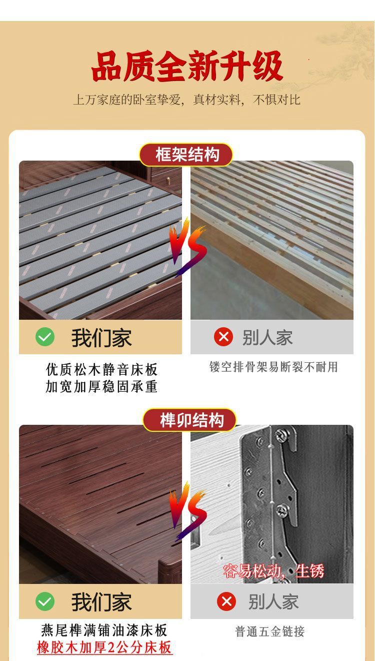 우드우드 신중국식 원목 침대 1.5m 수납 싱글 침대 1.8m 라이트 럭셔리 올드 스타일 모따구 더블 웨딩 침대
