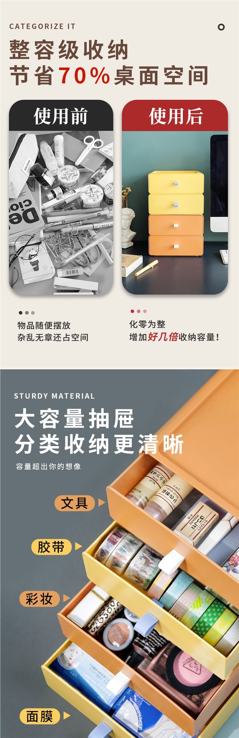 ✅ 데스크탑 수납함 서랍형 수납선반 사무실 소품 수납장 책상 정리함 수납장스토어 가기