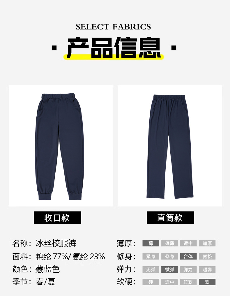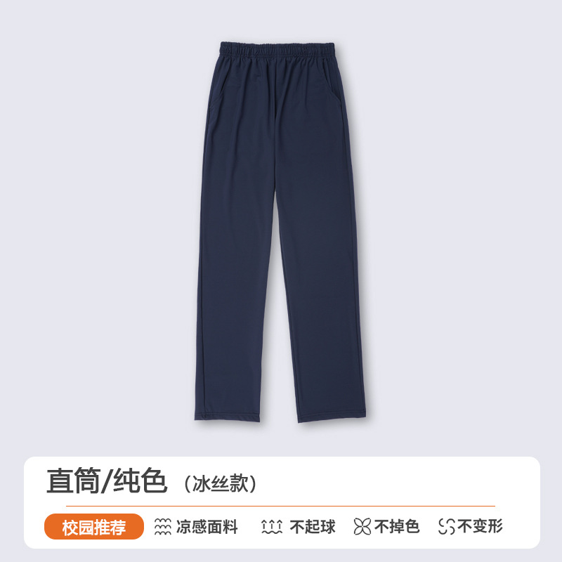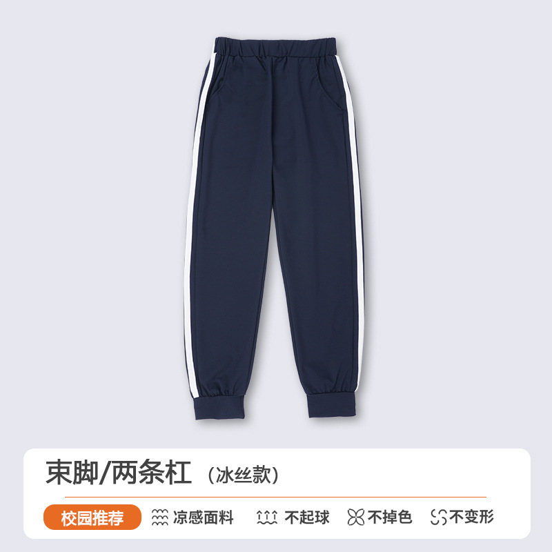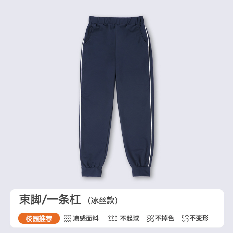 교복바지 아이스 실크 네이비 블루 원 스트라이프 2줄 중학생 스트레치 속건 여름 남녀 스포츠 팬츠
