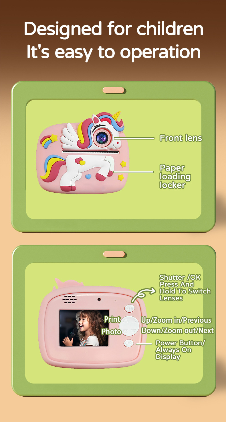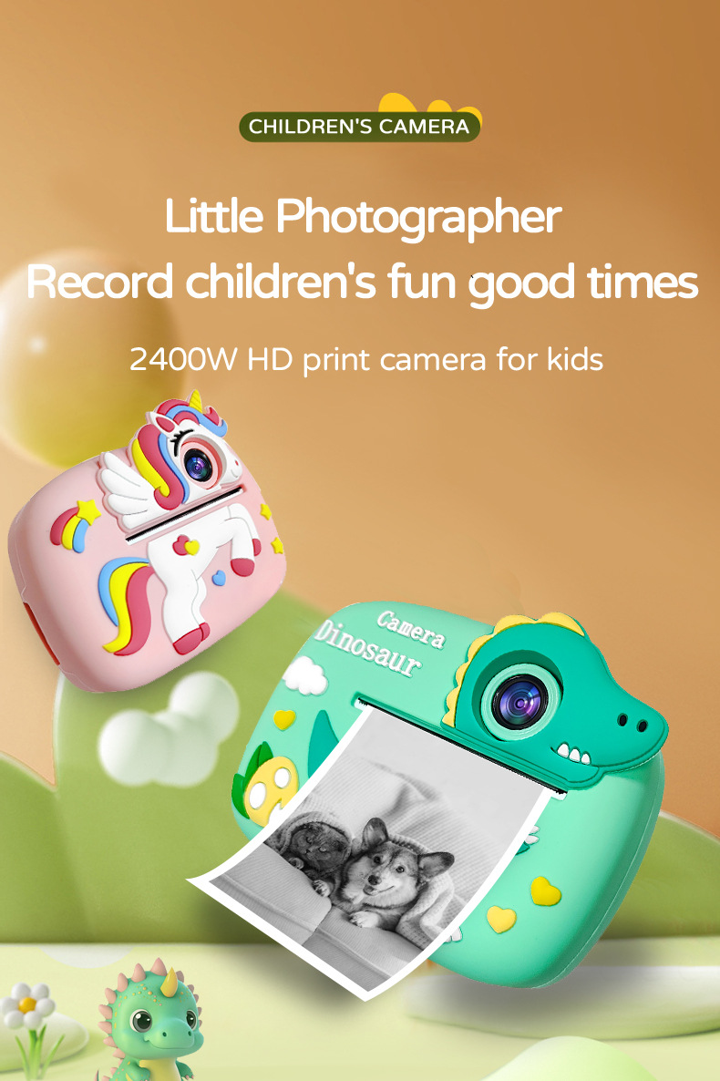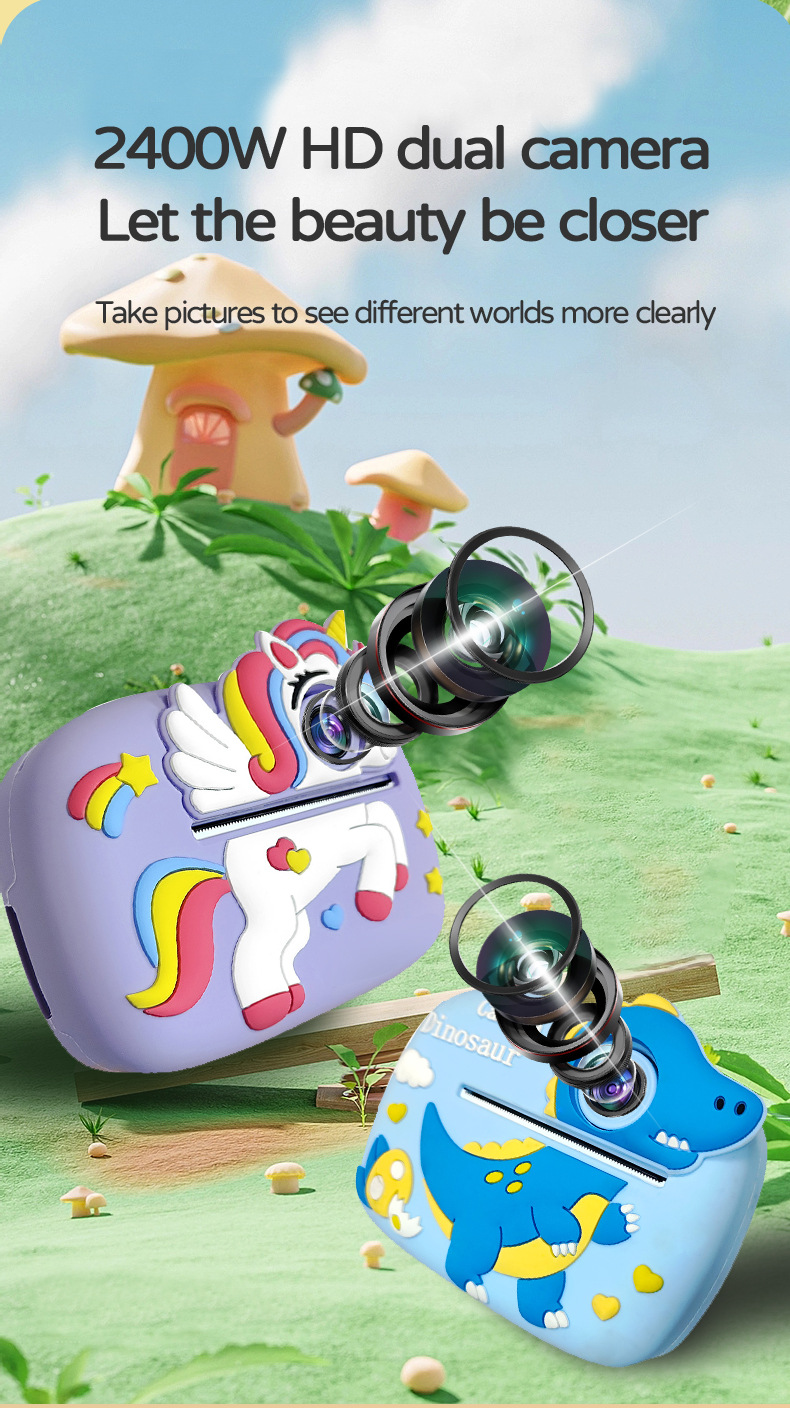 국경 간 새로운 2400W 픽셀 어린이 인쇄 카메라 즉석 카툰 듀얼 카메라 디지털 카메라