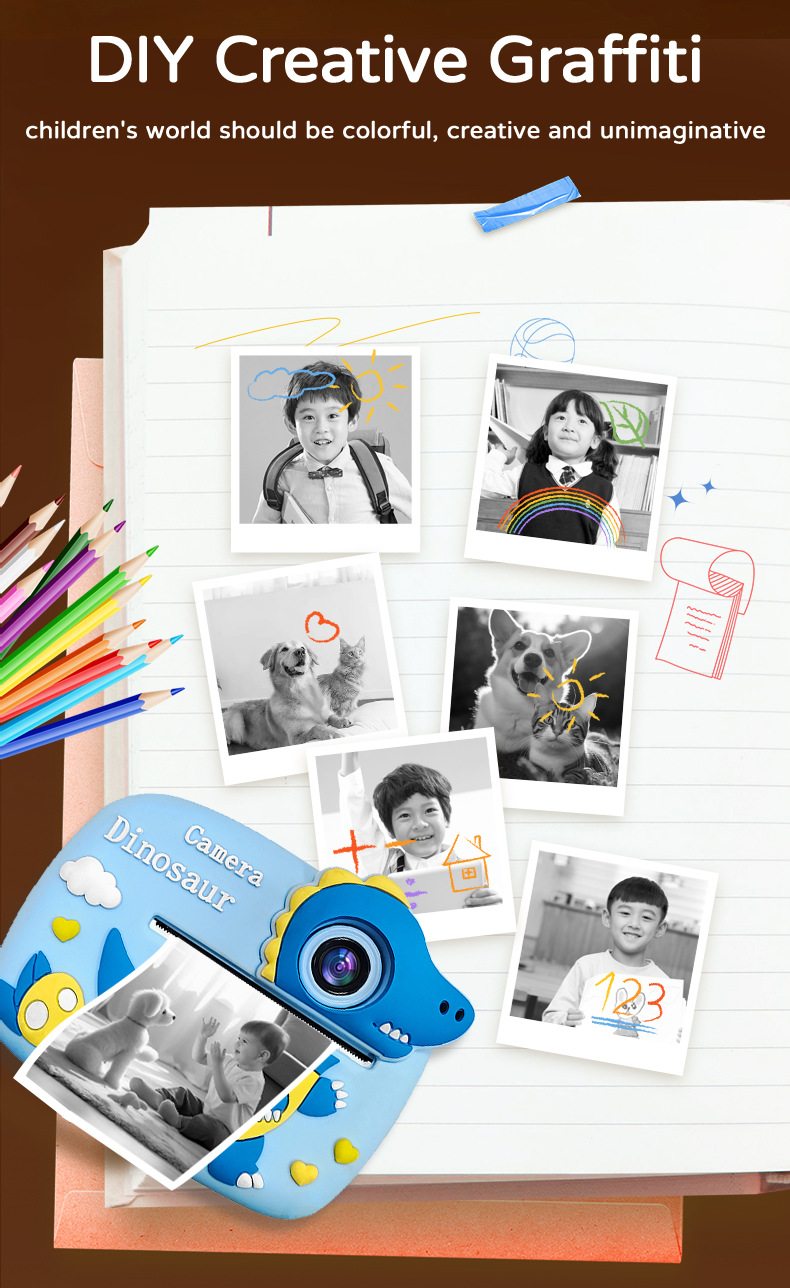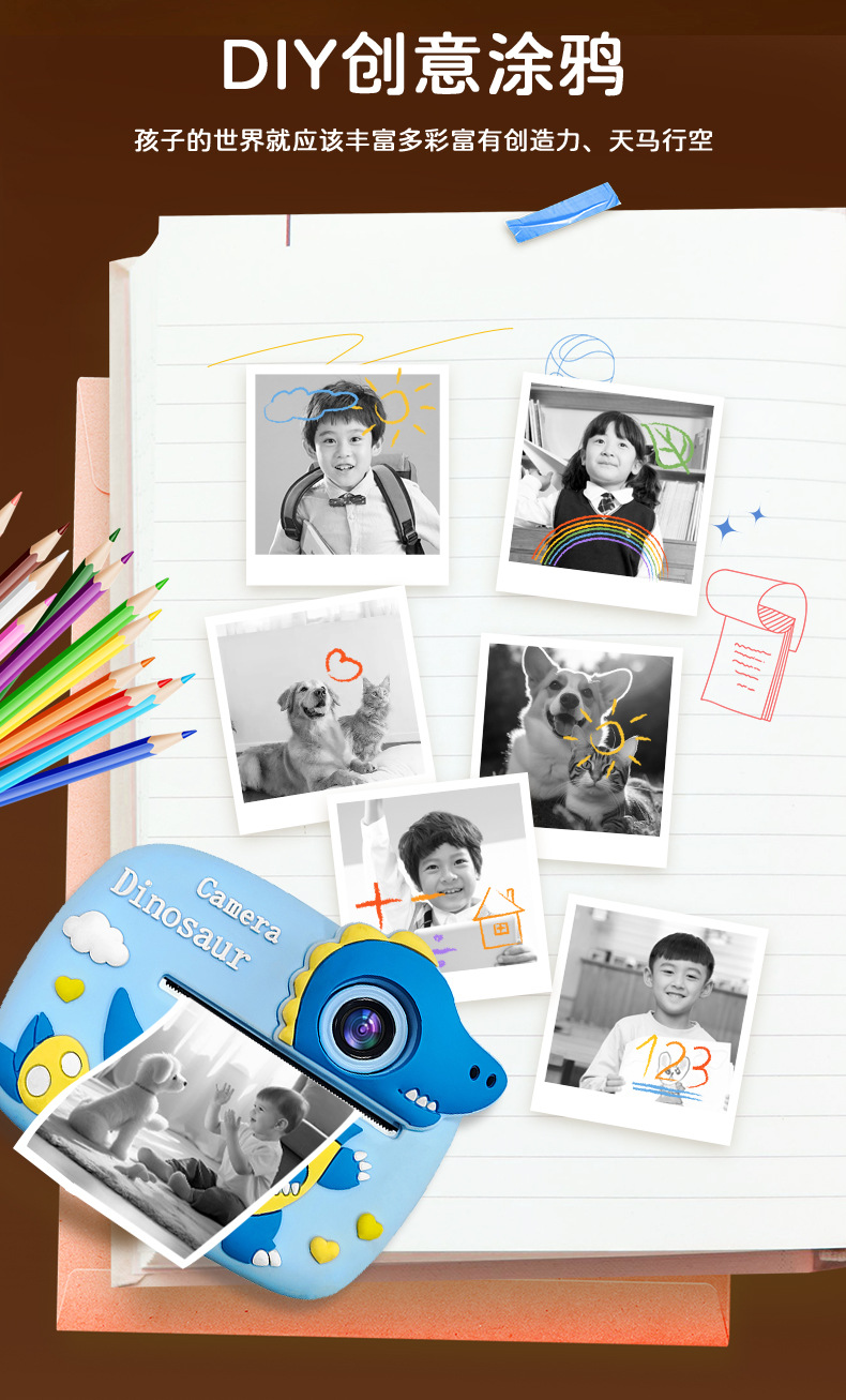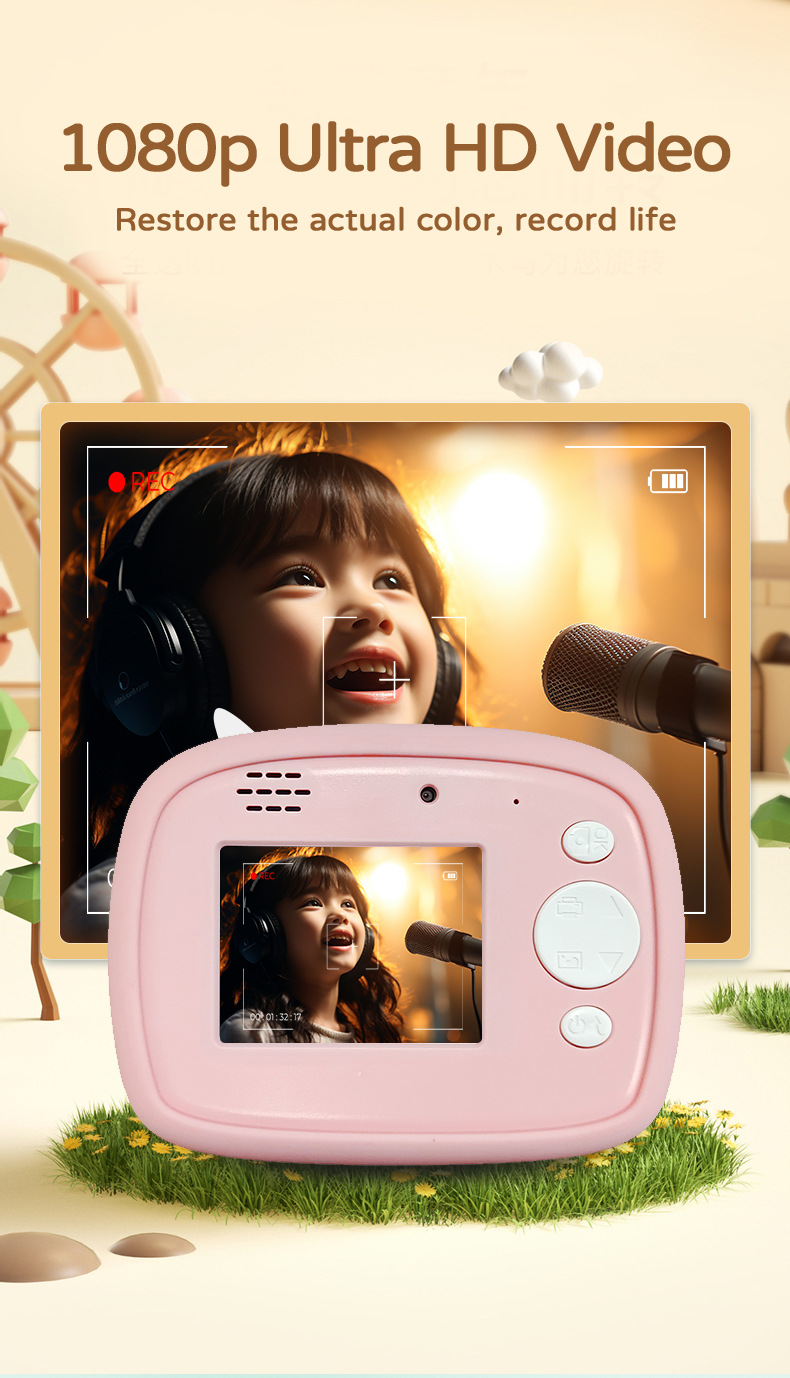국경 간 새로운 2400W 픽셀 어린이 인쇄 카메라 즉석 카툰 듀얼 카메라 디지털 카메라