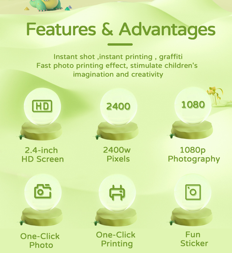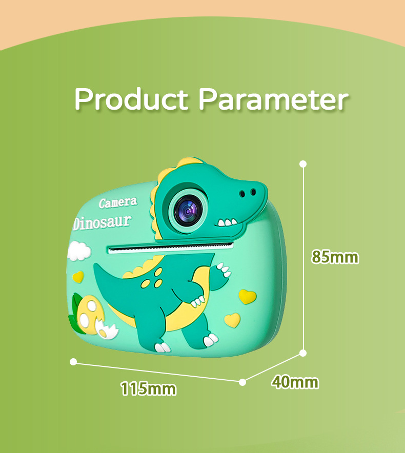• 실리콘 케이스가 포함된 모델 A 녹색 공룡 카메라