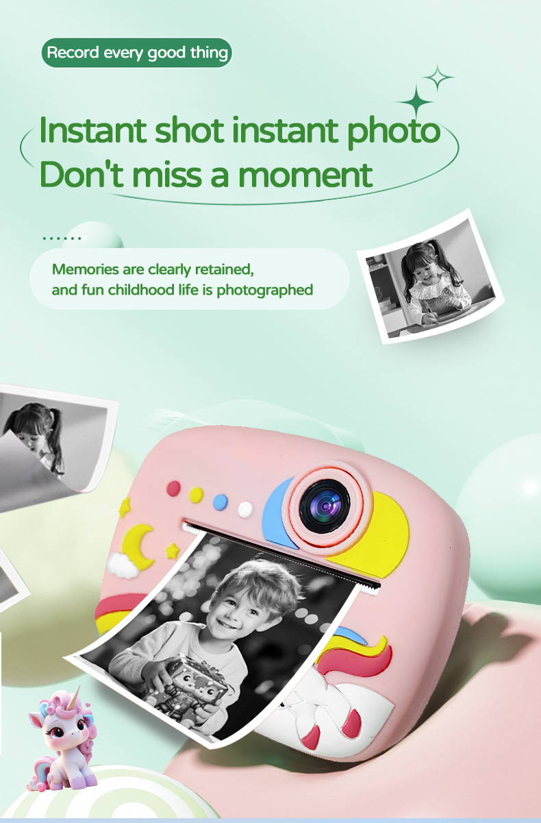 • 실리콘 케이스가 포함된 모델 B 핑크 유니콘 카메라