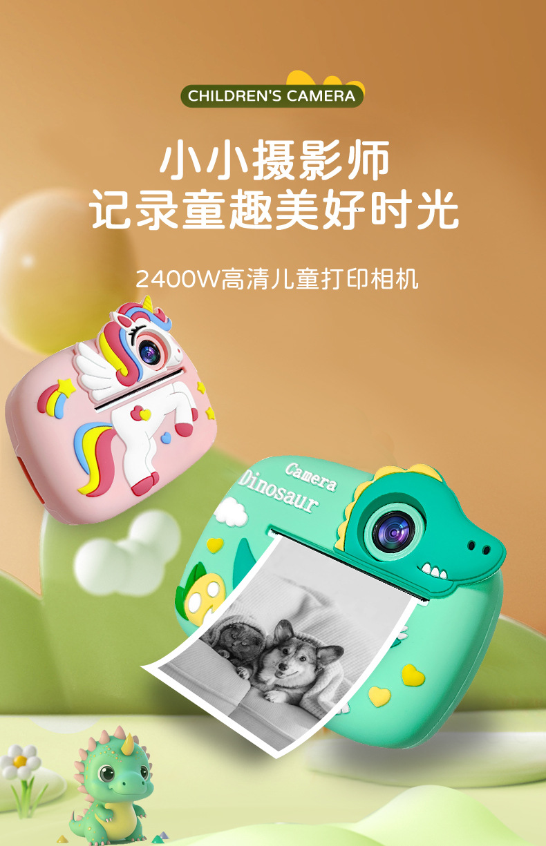 국경 간 새로운 2400W 픽셀 어린이 인쇄 카메라 즉석 카툰 듀얼 카메라 디지털 카메라스토어 가기