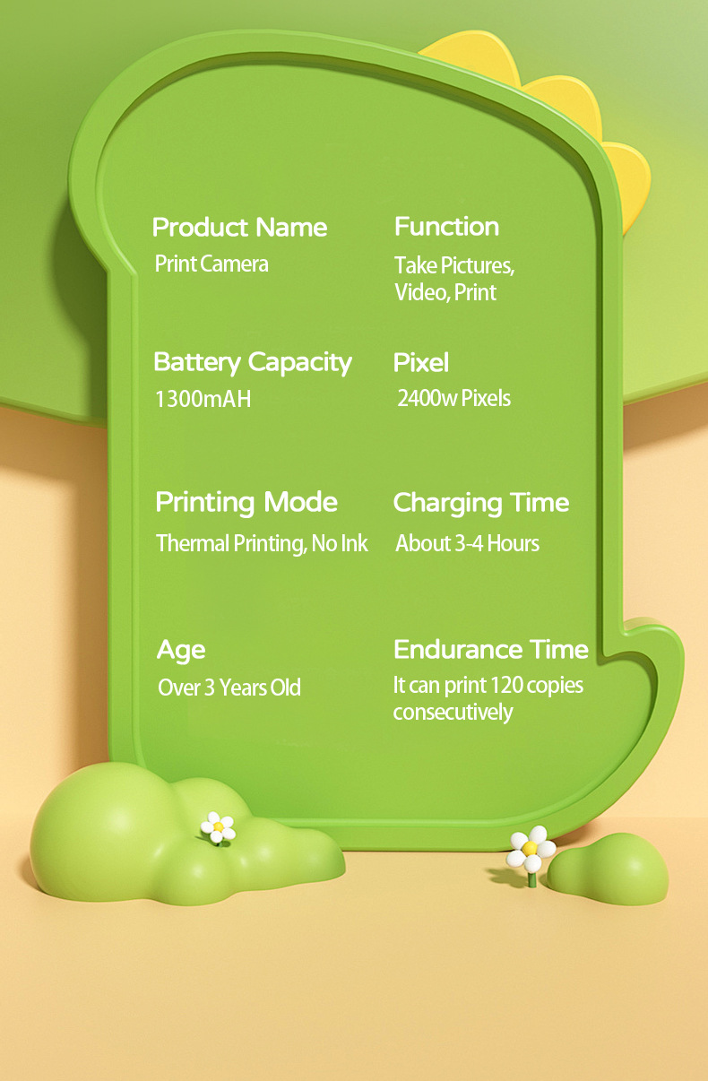 • 실리콘 케이스가 포함된 모델 B 녹색 공룡 카메라