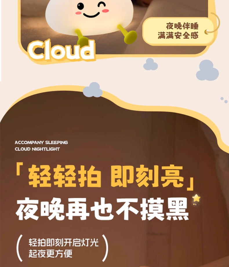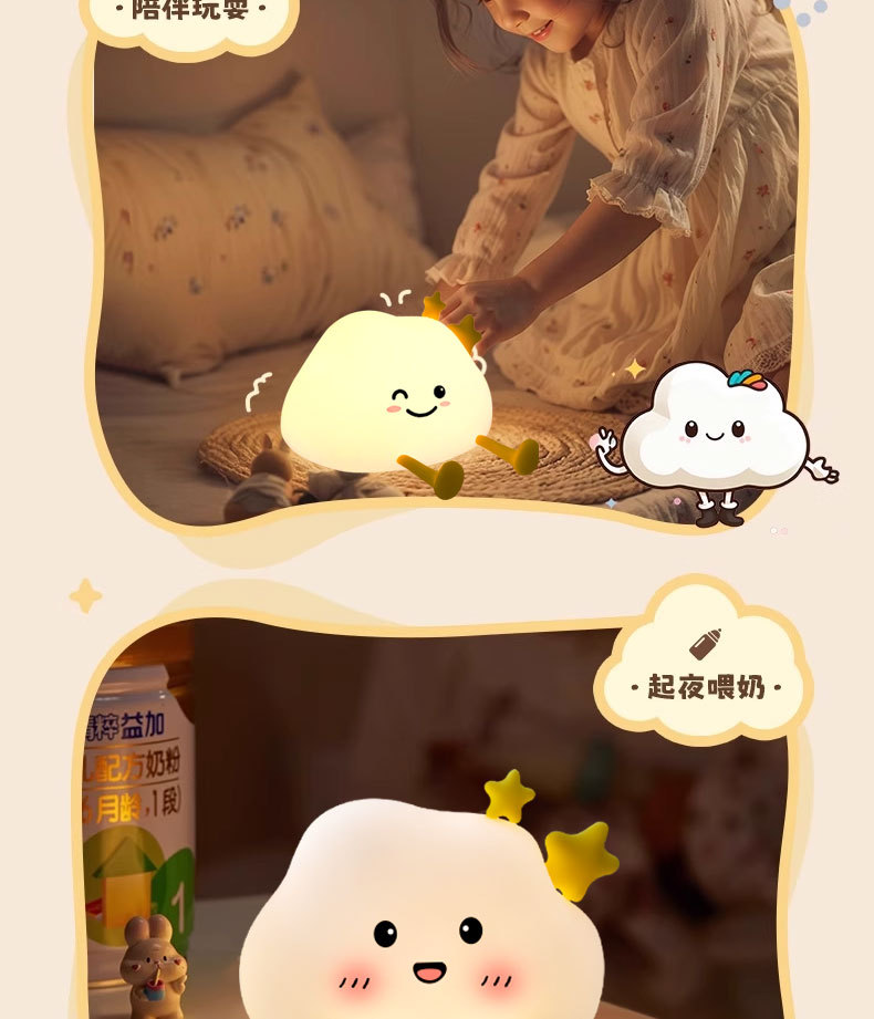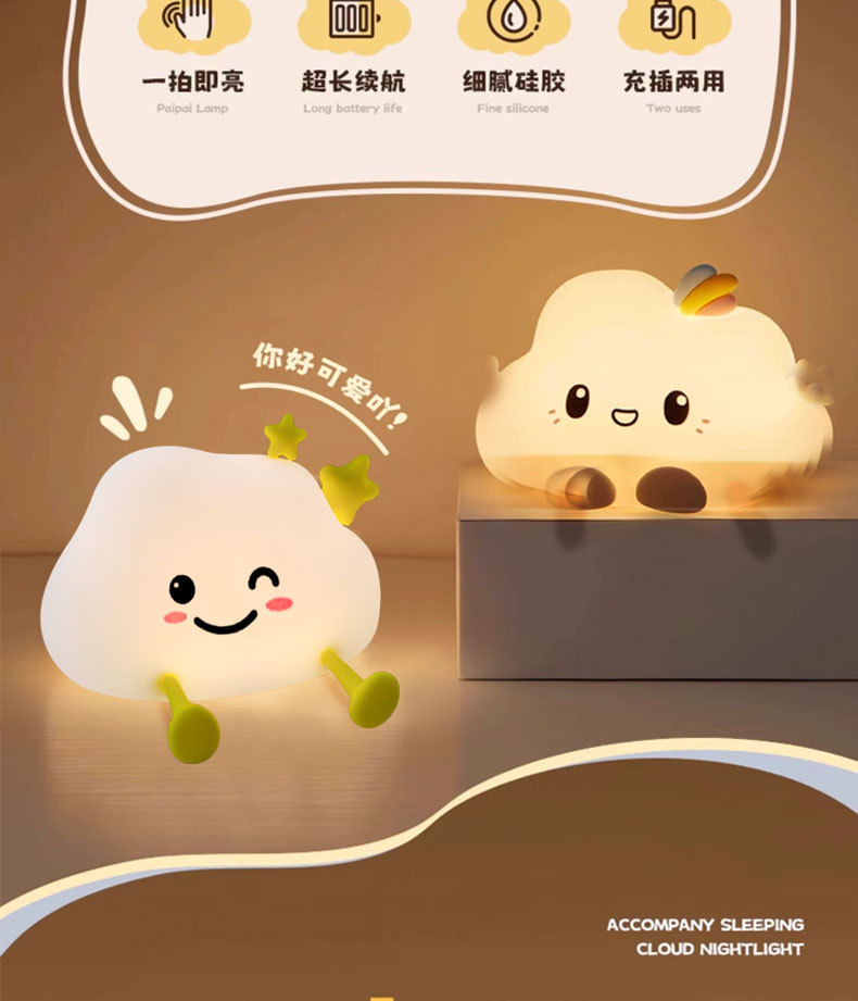 실리콘 클라우드 야간 조명 따뜻한 빛 감지 팻 라이트 하이 엔드 야간 조명 크로스 보드 스팟 휴대 전화 홀더 OE M 가능스토어 가기
