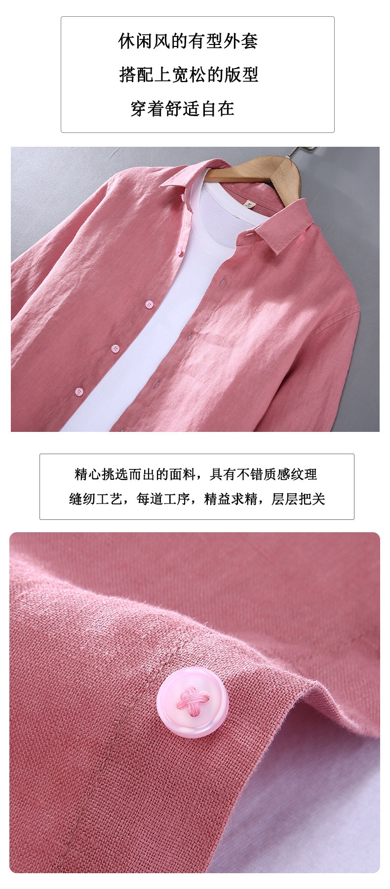 9605 하이 엔드 퓨어 린넨 남성 셔츠 봄 여름 캐주얼 라펠 셔츠 대형 루즈하고 다재다능한 의류 트렌드