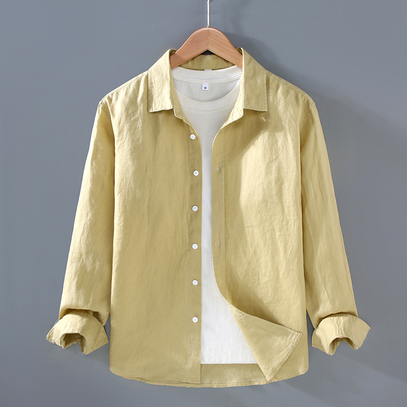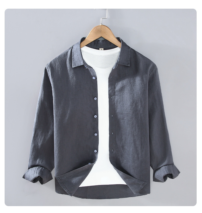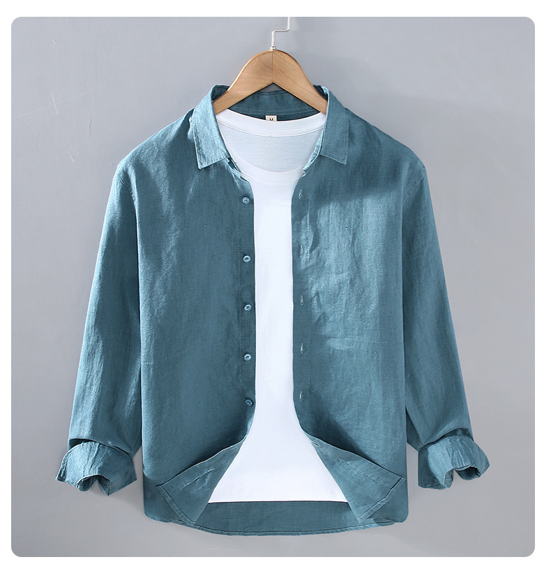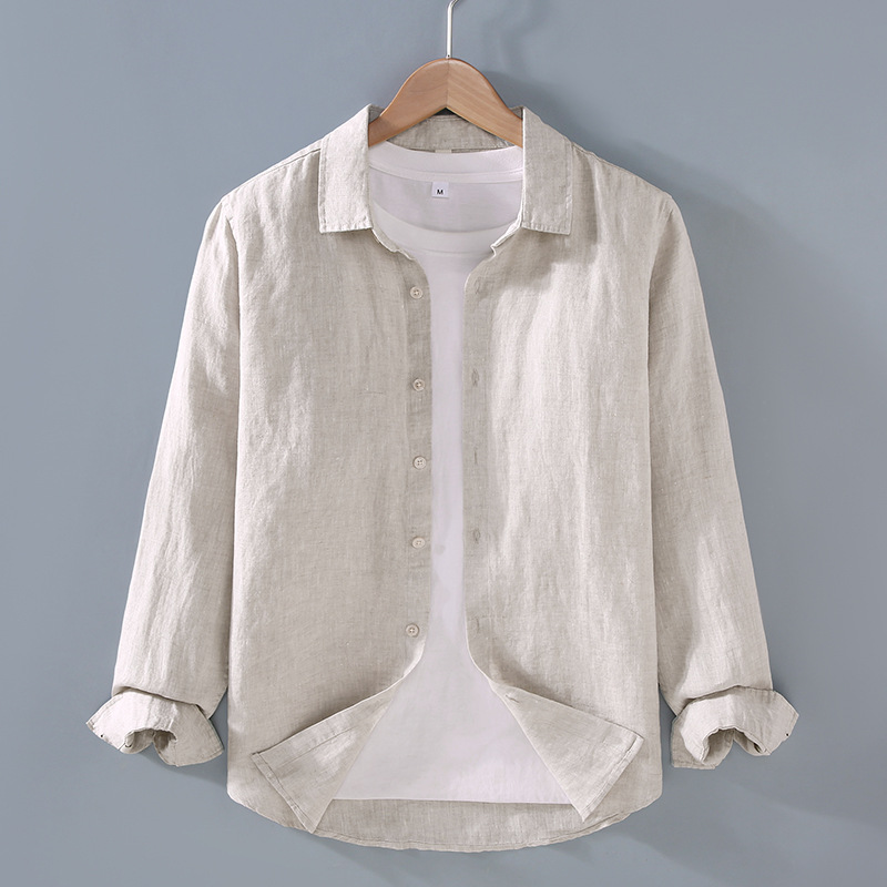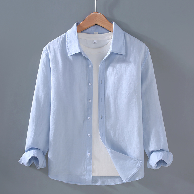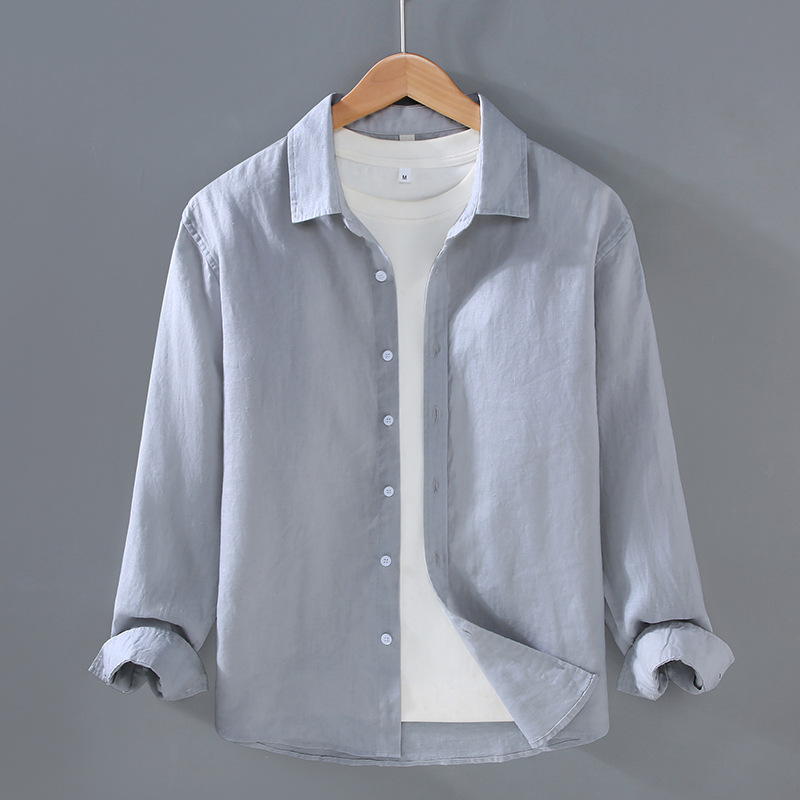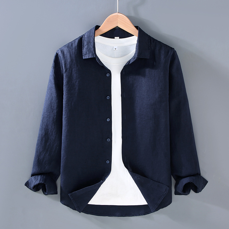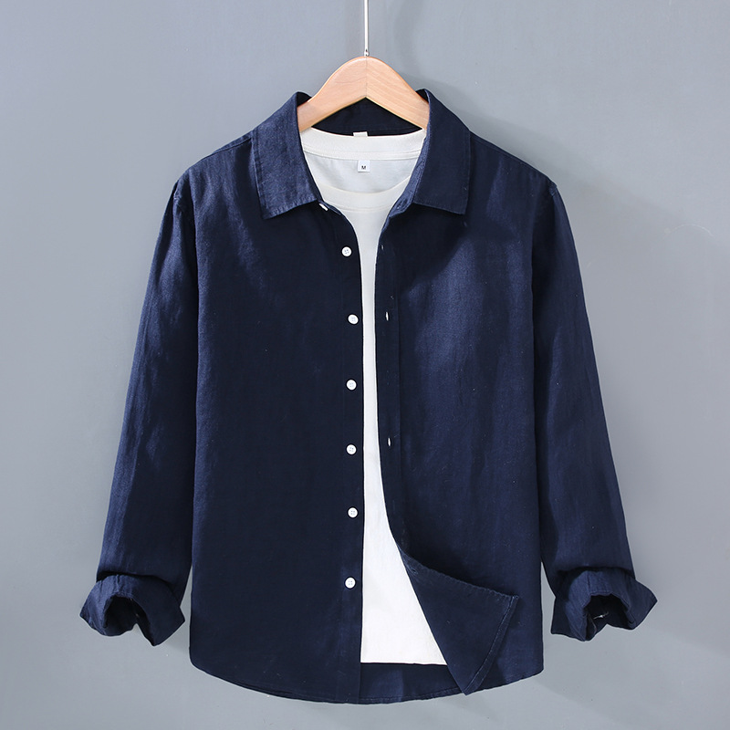 9605 하이 엔드 퓨어 린넨 남성 셔츠 봄 여름 캐주얼 라펠 셔츠 대형 루즈하고 다재다능한 의류 트렌드스토어 가기