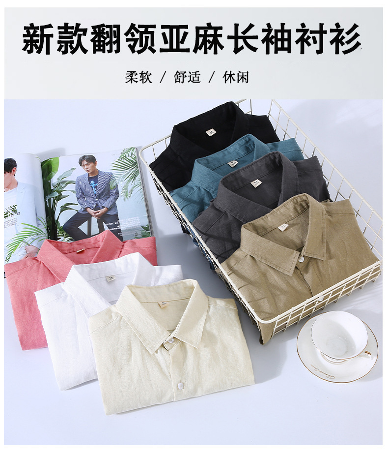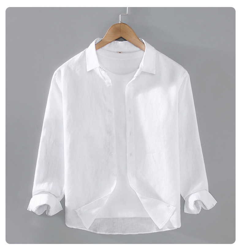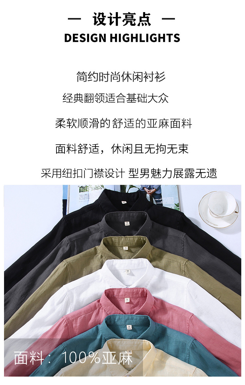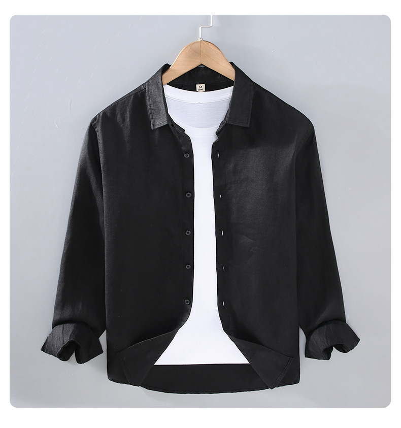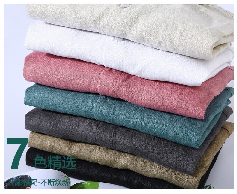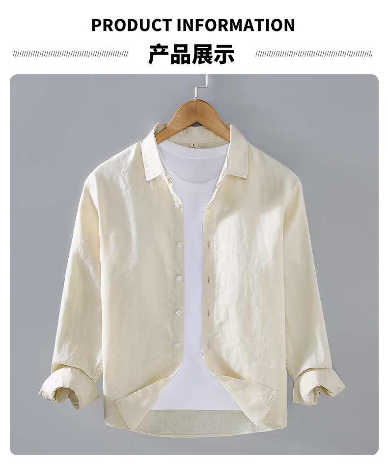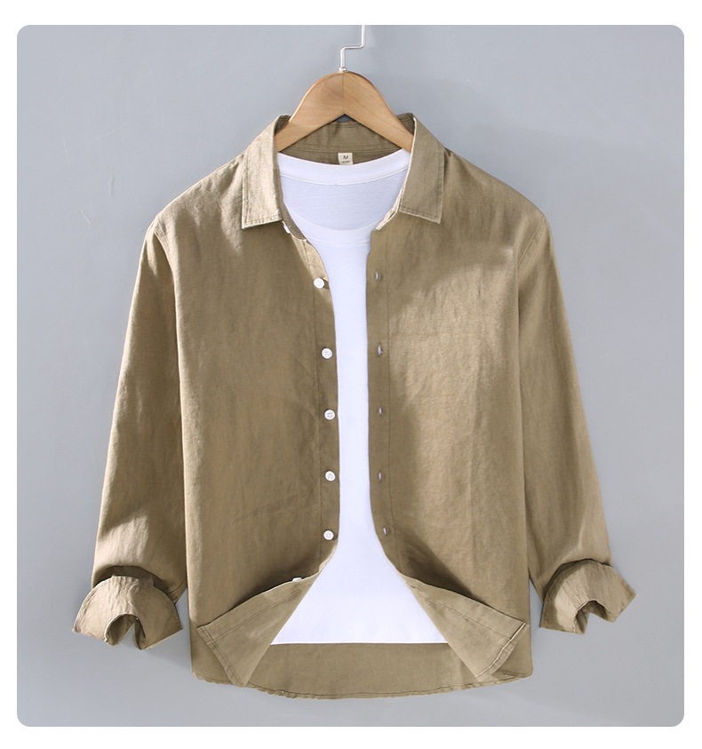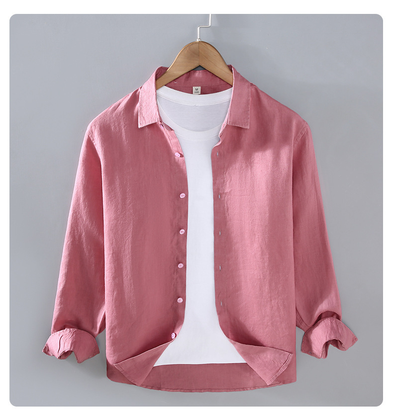 9605 하이 엔드 퓨어 린넨 남성 셔츠 봄 여름 캐주얼 라펠 셔츠 대형 루즈하고 다재다능한 의류 트렌드스토어 가기