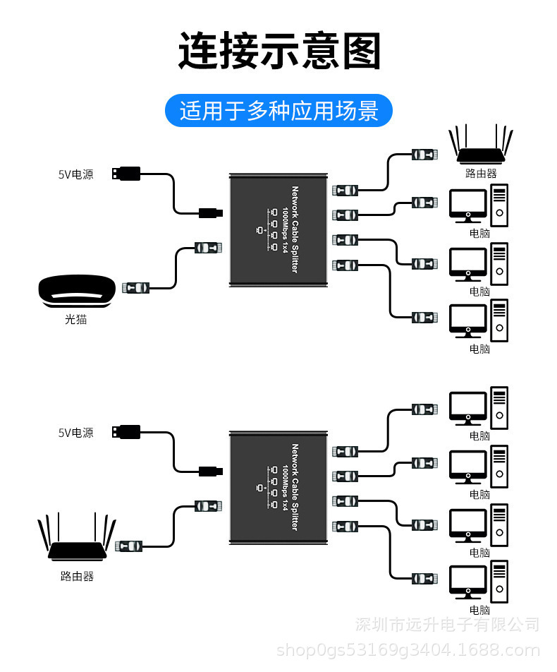 국경 간 기가비트 네트워크 포트 네트워크 케이블 1/2/3/4 확장기 네트워크 분배기 RJ45 스위치 라우터
