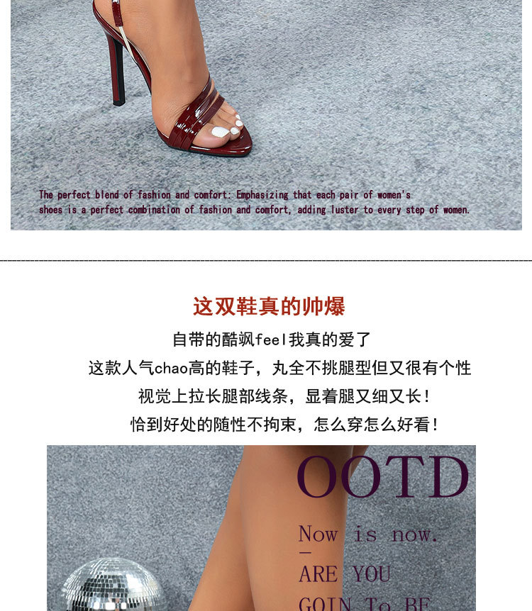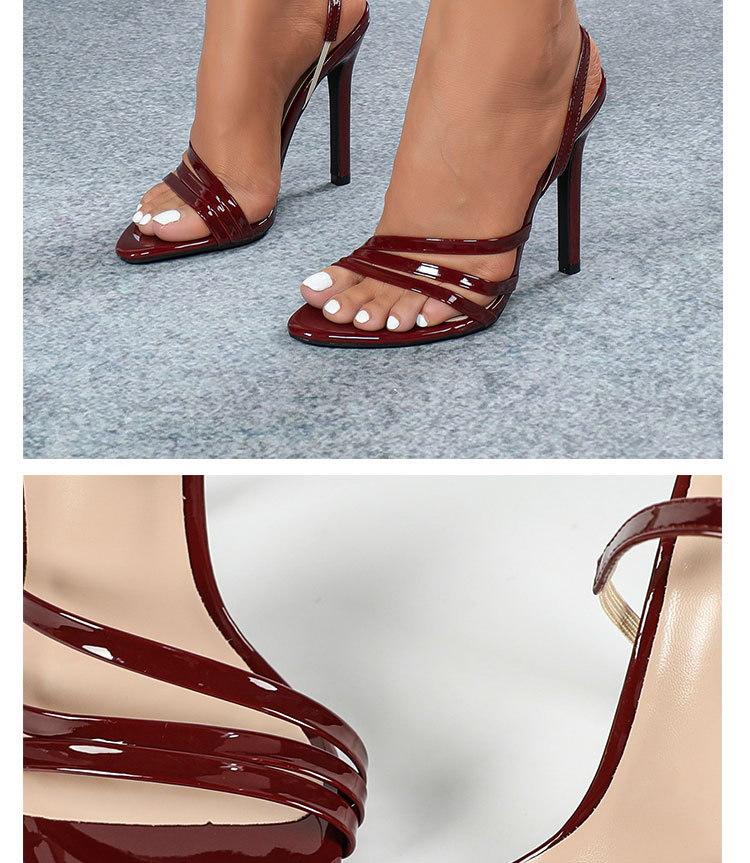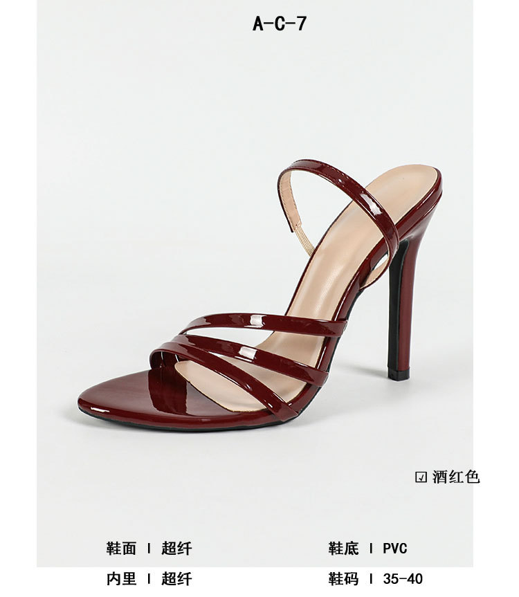 국경을 넘나드는 유럽과 미국 여성의 페이턴트 가죽 뾰족한 발가락 뒷발목 스트랩 스틸레토 샌들 화려한 패션 파티 하이힐스토어 가기
