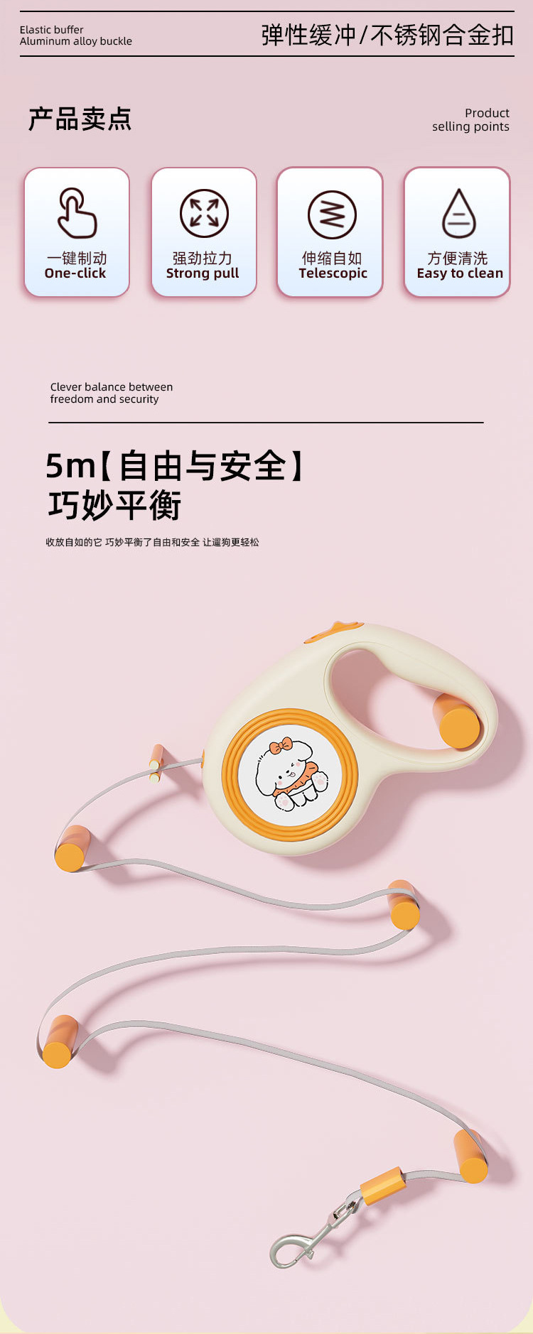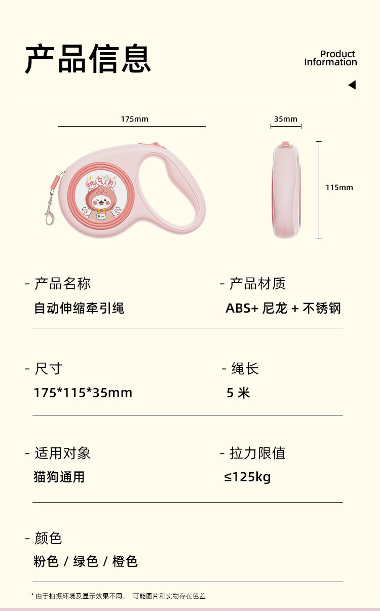 애완 동물 귀여운 자동 견인 장치 개 야외 자동 개폐식 견인 로프 안전 개 산책 로프 5m 견인 장치