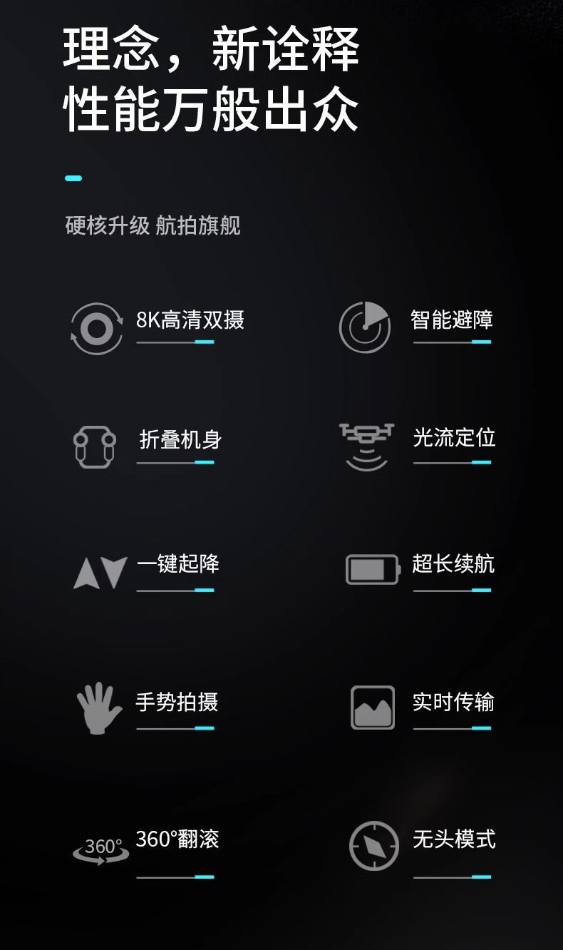 • 6K 듀얼 카메라 [전자조종 + 장애물 회피 + 호버링 + 복귀]
