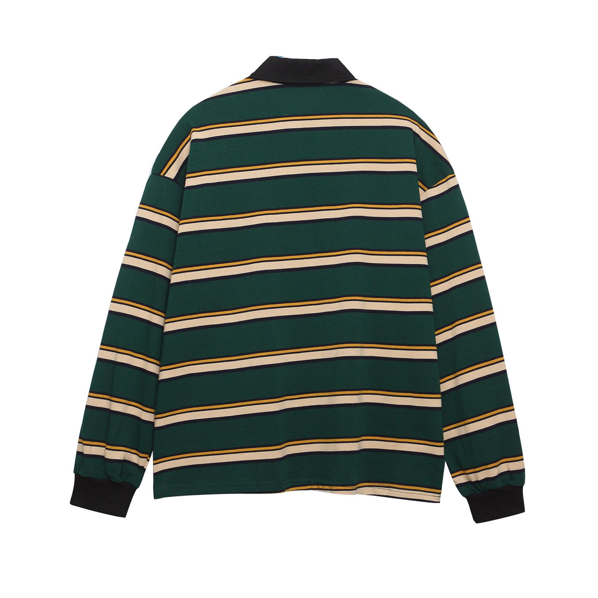 미국 복고풍 대비 색 줄무늬 자수 긴팔 폴로 칼라 스웨트 셔츠 남성 가을 새로운 느슨한 캐주얼 커플 탑스토어 가기