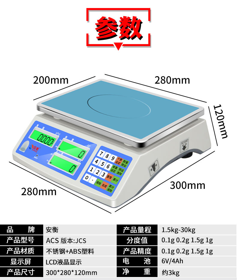 Anheng 고정밀 계산 및 가격 책정 상업용 전자 저울 정확한 6/10/15/30kg/1g 산업용 저울 0.1g스토어 가기