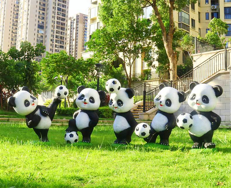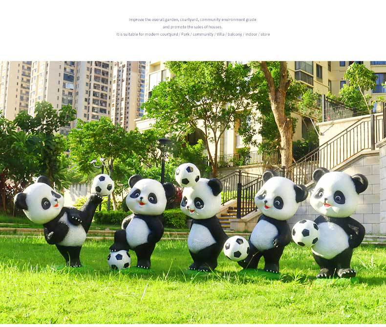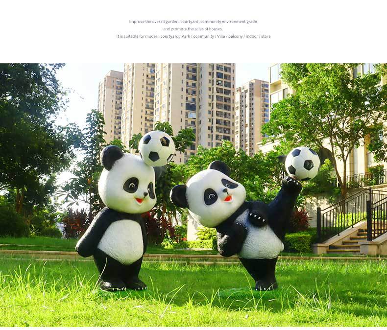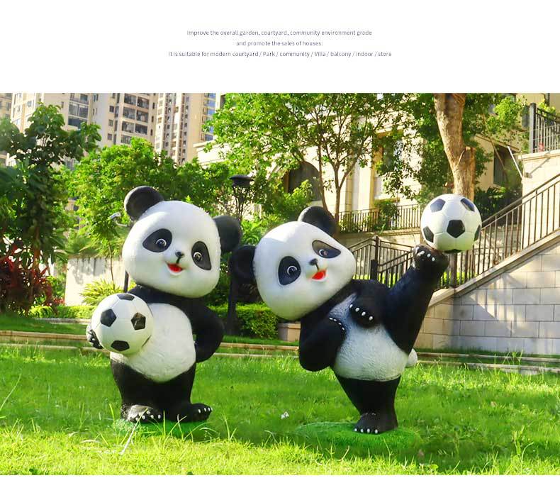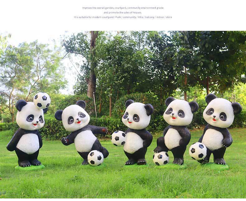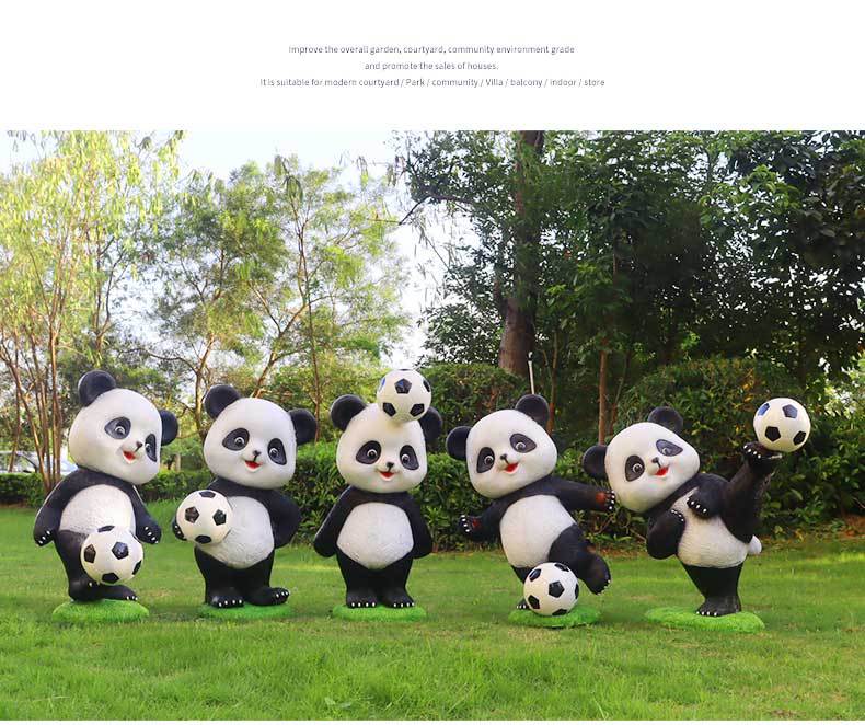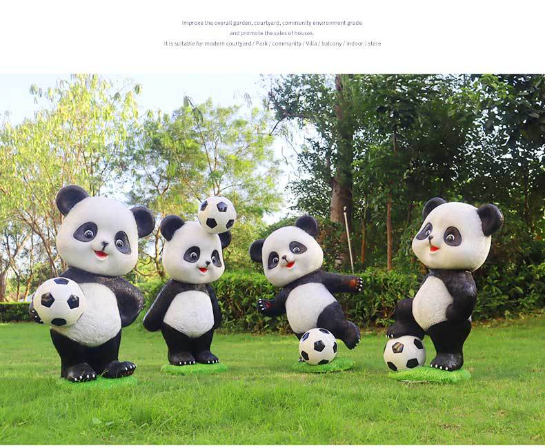 만화 팬더 축구 조각상 야외 정원 공원 마당 조경 장식 정원 장식품 공예품 제조업체스토어 가기