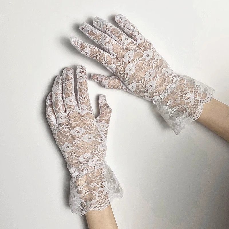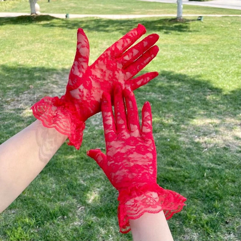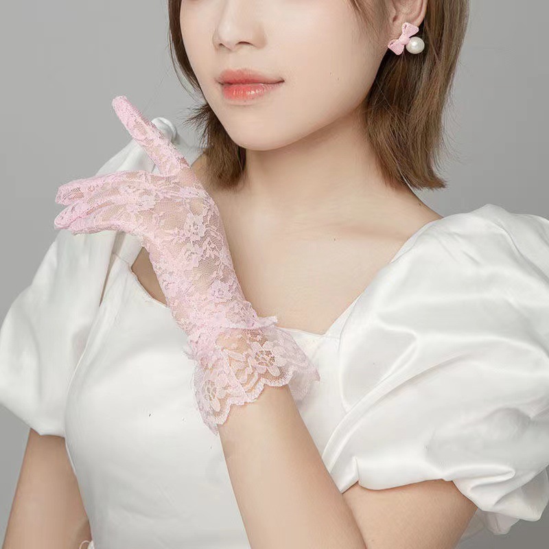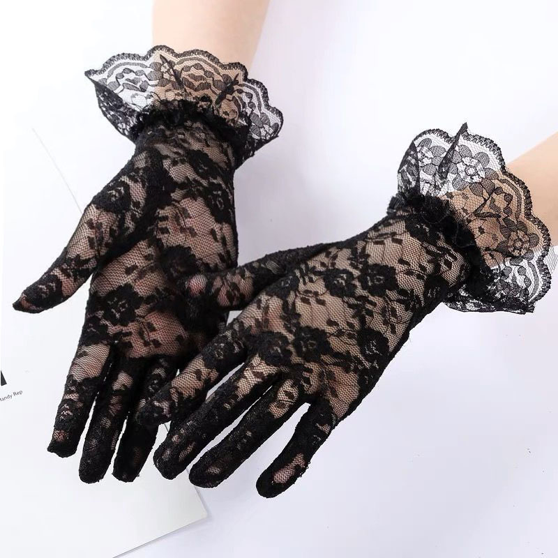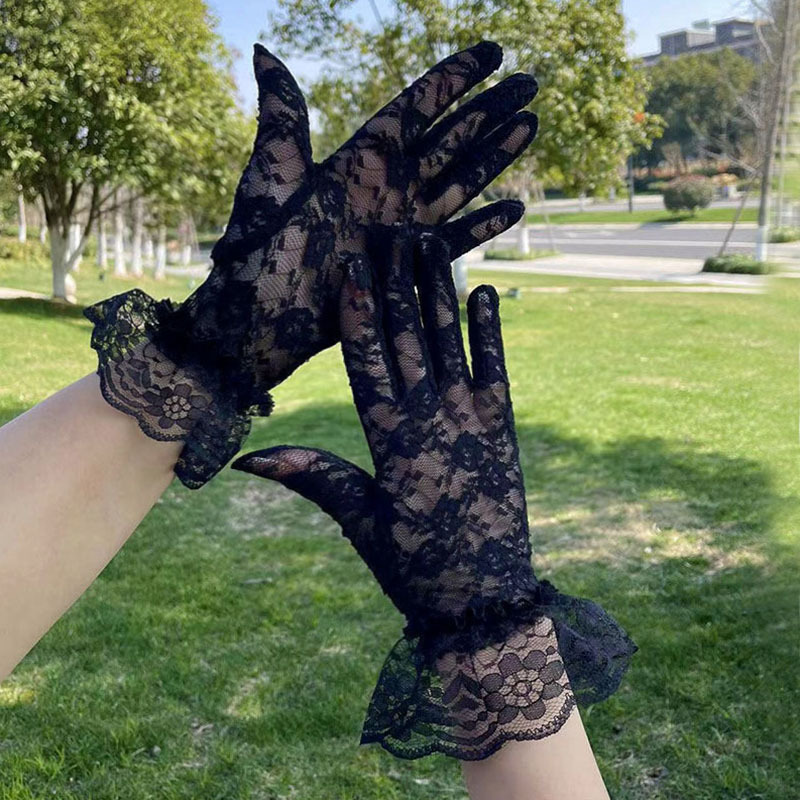 제조업체 여름 여성의 검은 대형 레이스 섹시한 레이스 짧은 태양 보호 장갑 얇은 메쉬 웨딩 장갑