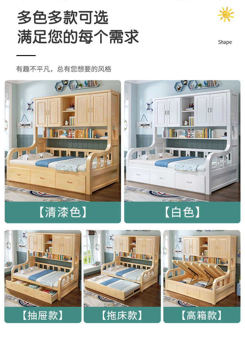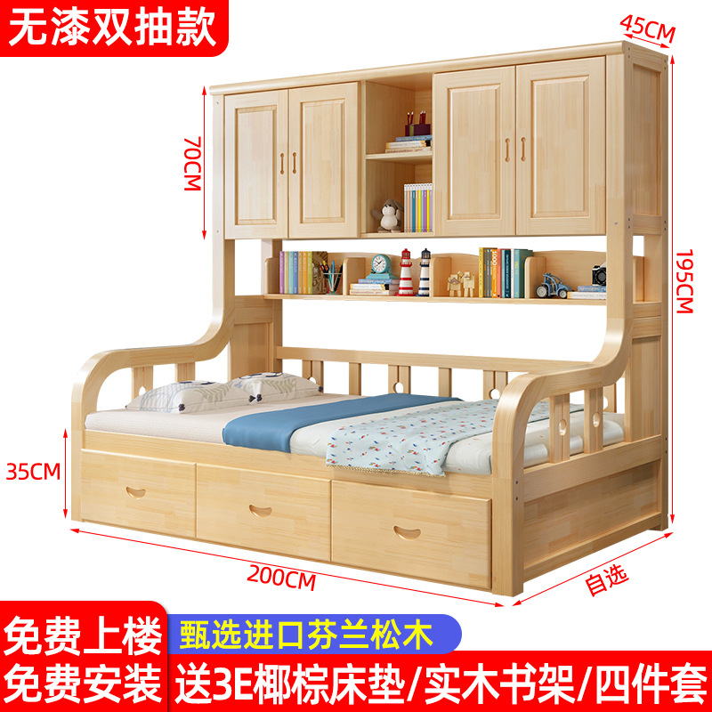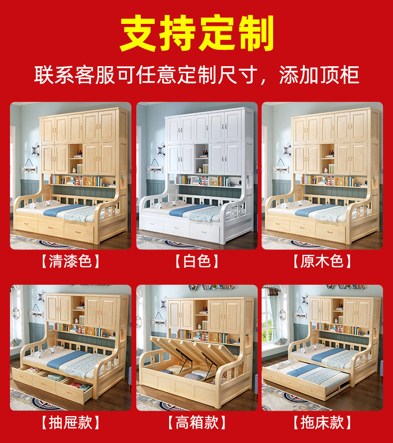 단단한 나무 어린이 침대 다다미 옷장 침대 다기능 수납 침대 책장이 있는 통합 소형 아파트 침대