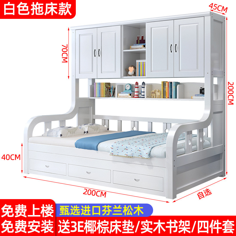 단단한 나무 어린이 침대 다다미 옷장 침대 다기능 수납 침대 책장이 있는 통합 소형 아파트 침대스토어 가기
