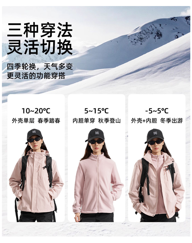 새로운 야외 재킷 3-in-one 분리형 남성 및 여성 작업복 방수 및 따뜻한 등산 재킷 캐주얼스토어 가기