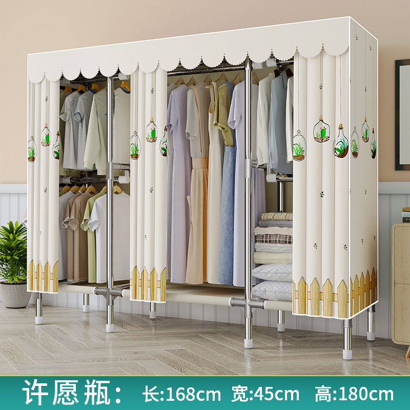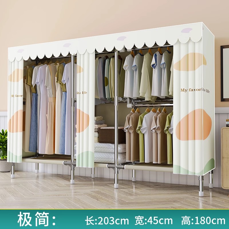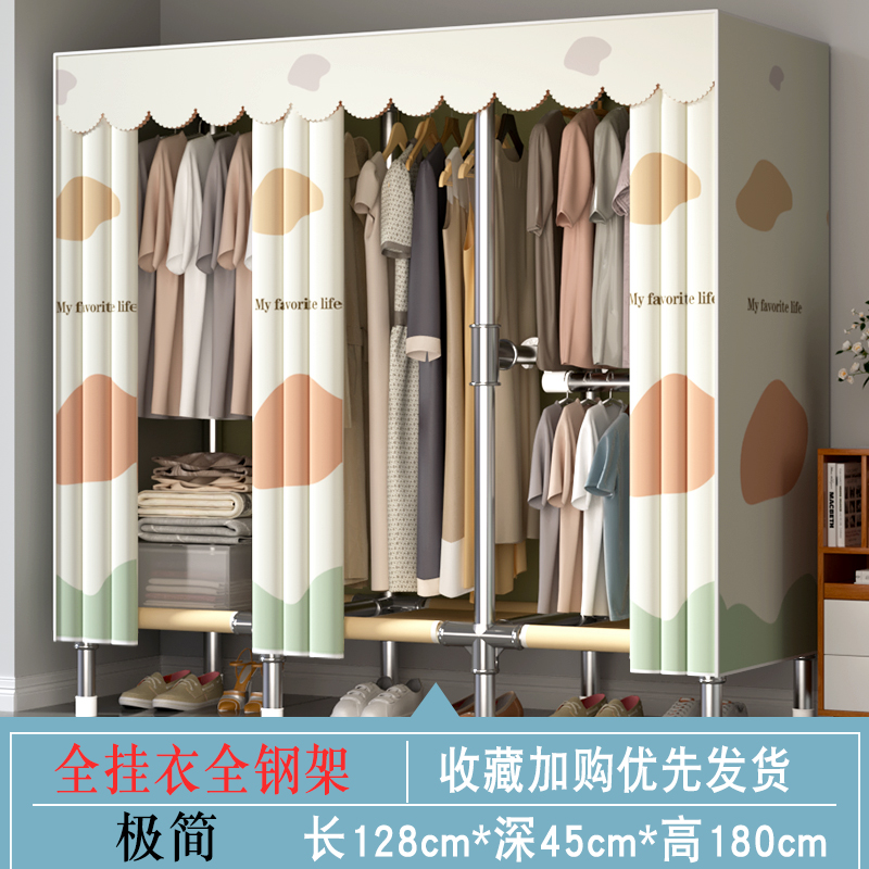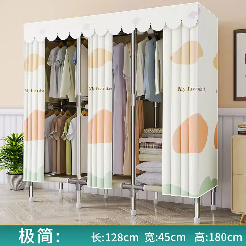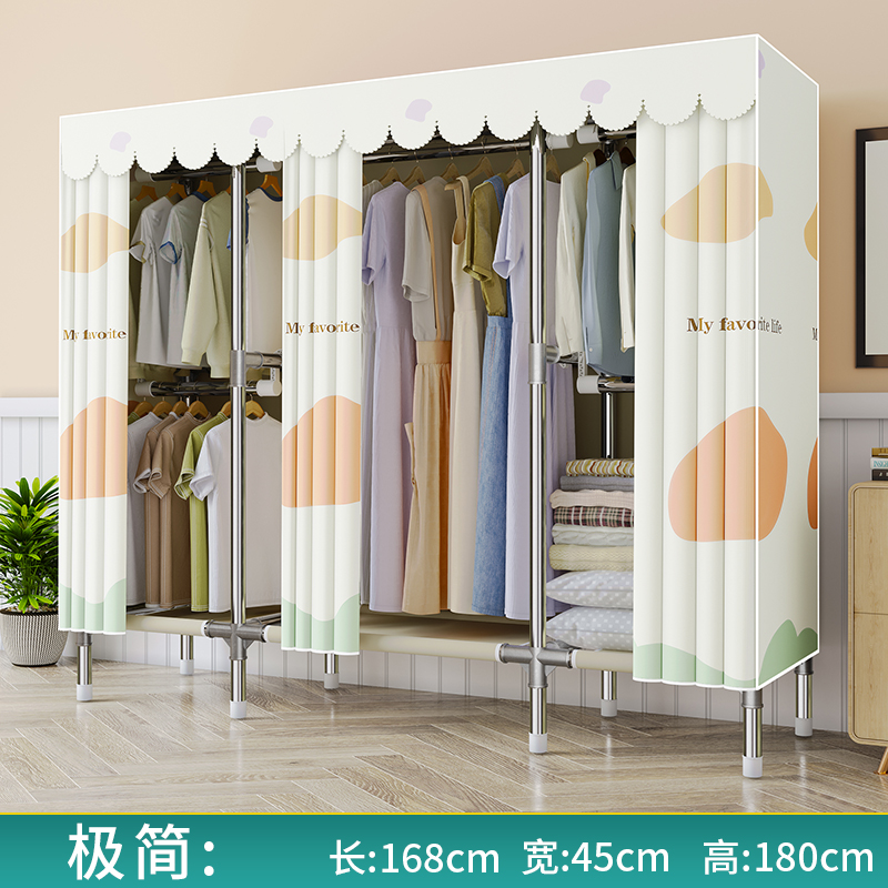 간단한 옷장 천 옷장 침실 홈 임대 전체 교수형 캐비닛 강력하고 내구성이 뛰어난 강철 프레임 보관 옷장 옷걸이스토어 가기