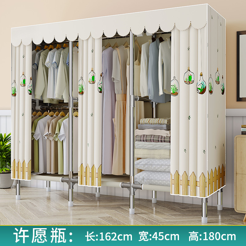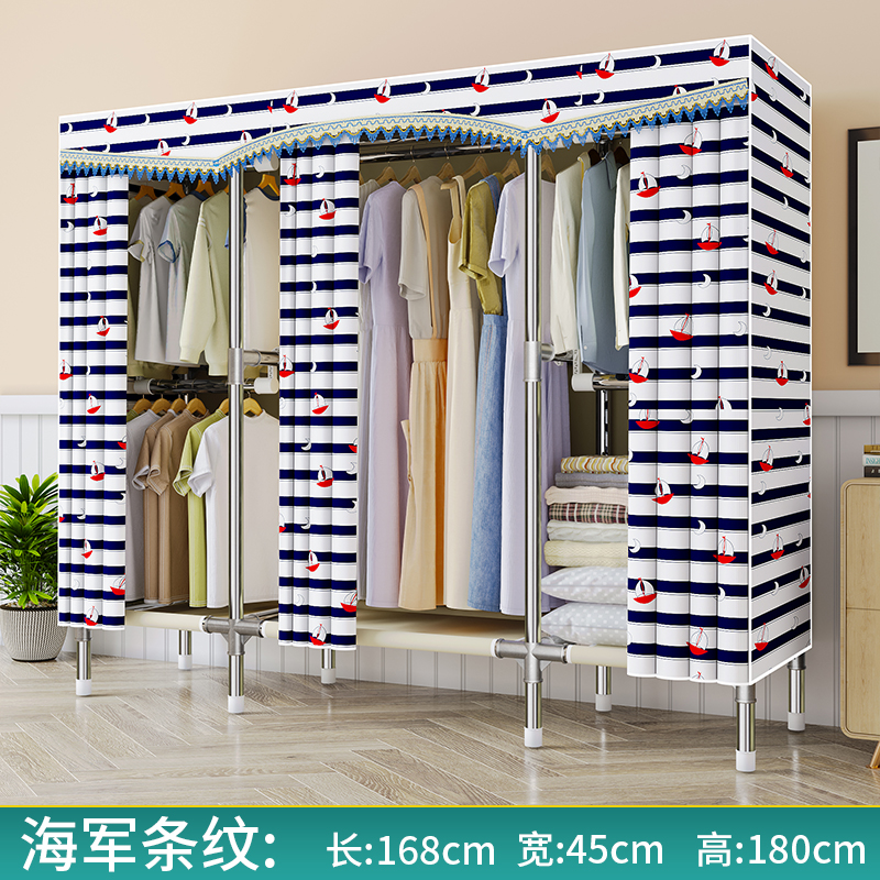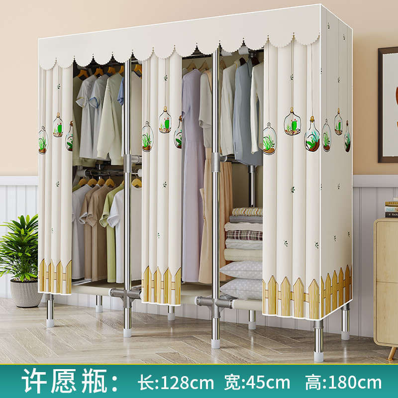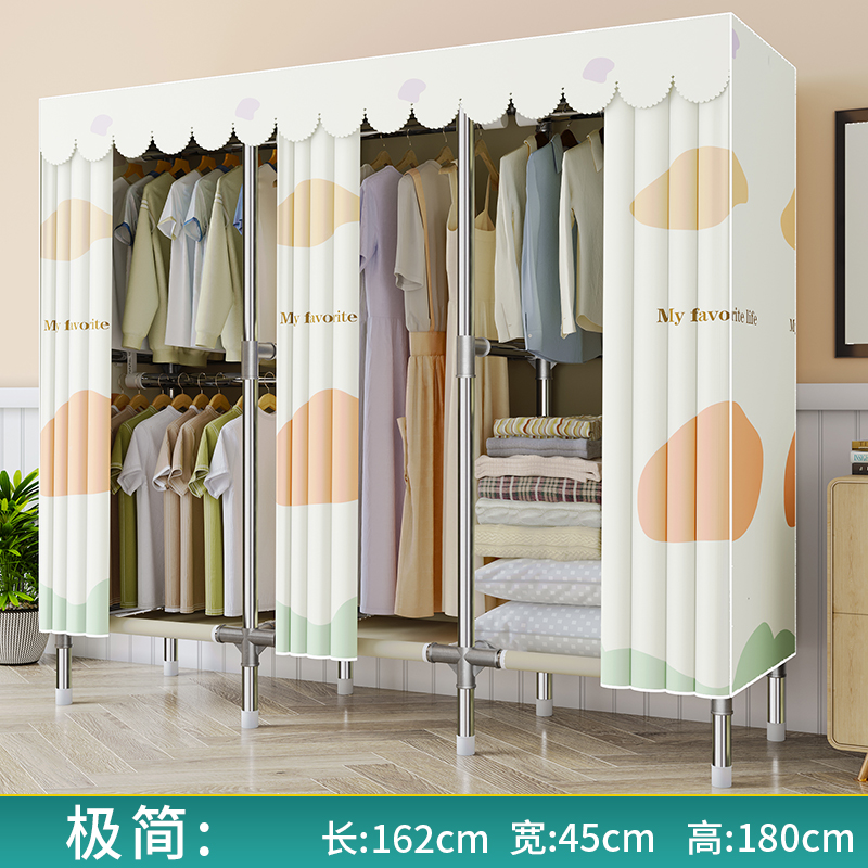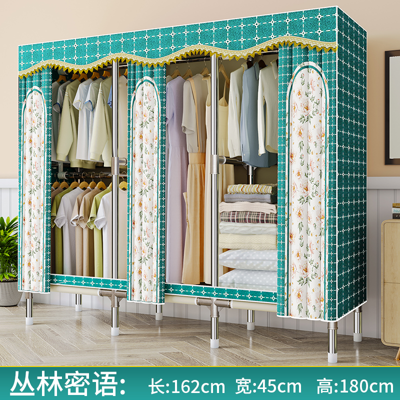 간단한 옷장 천 옷장 침실 홈 임대 전체 교수형 캐비닛 강력하고 내구성이 뛰어난 강철 프레임 보관 옷장 옷걸이스토어 가기