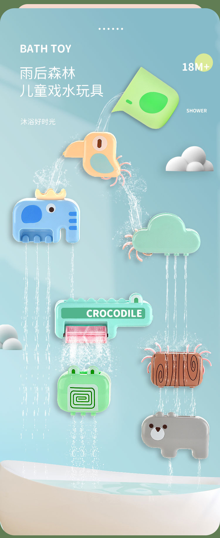국경 간 어린이 욕실 물 빨판 만화 미니 스타일 물놀이 목욕 장난감 세트 노점 도매