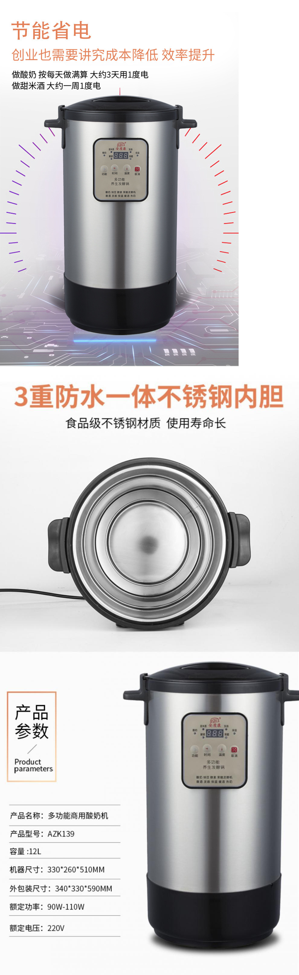 요구르트 기계 상업용 대용량 요구르트 기계 안전 과일 효소 기계 12L 달콤한 쌀 와인 발효 완전 자동