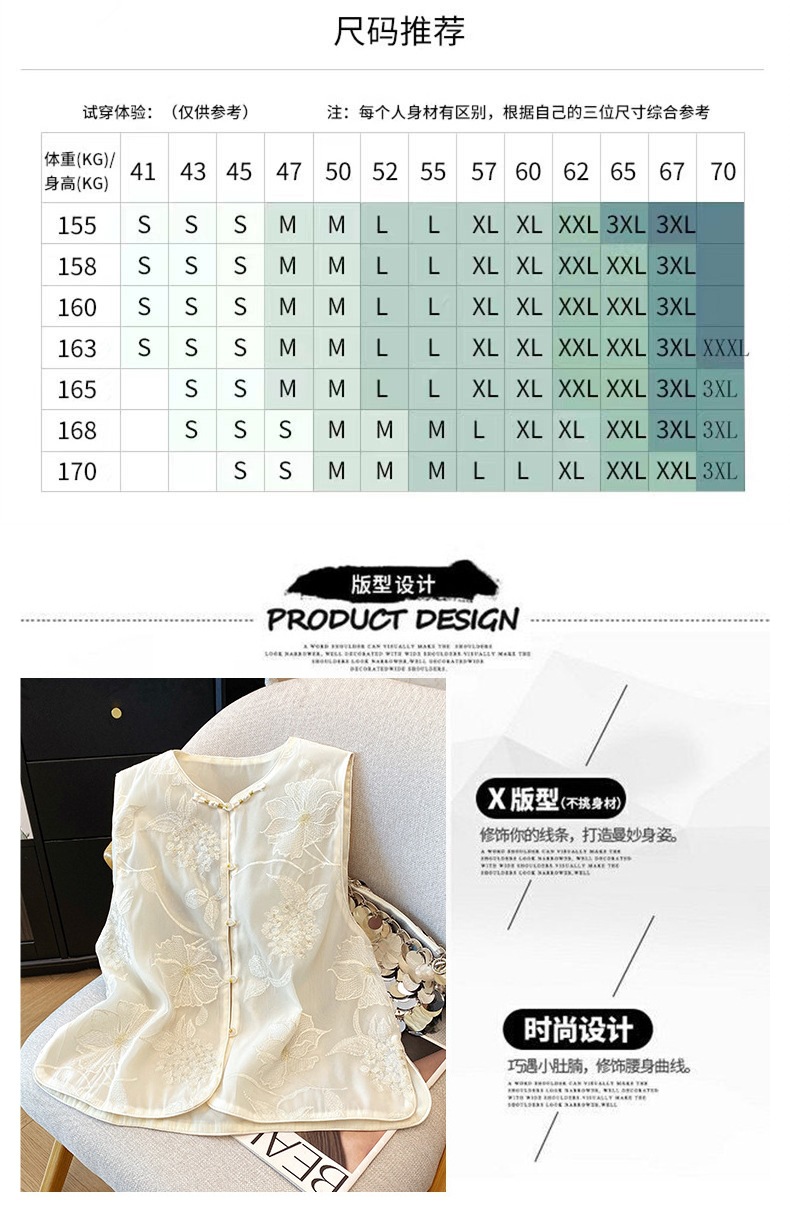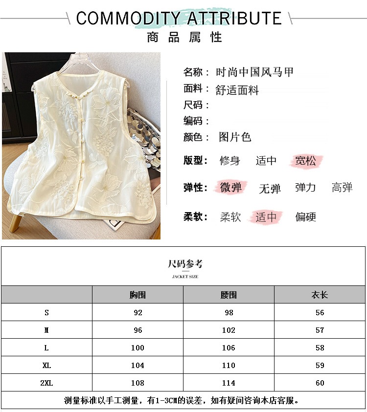여성을 위한 새로운 중국 스타일의 버튼 자수 조끼, 여름 조끼, 여성스러운 기질, 아름다운 틈새 디자인 탑스토어 가기