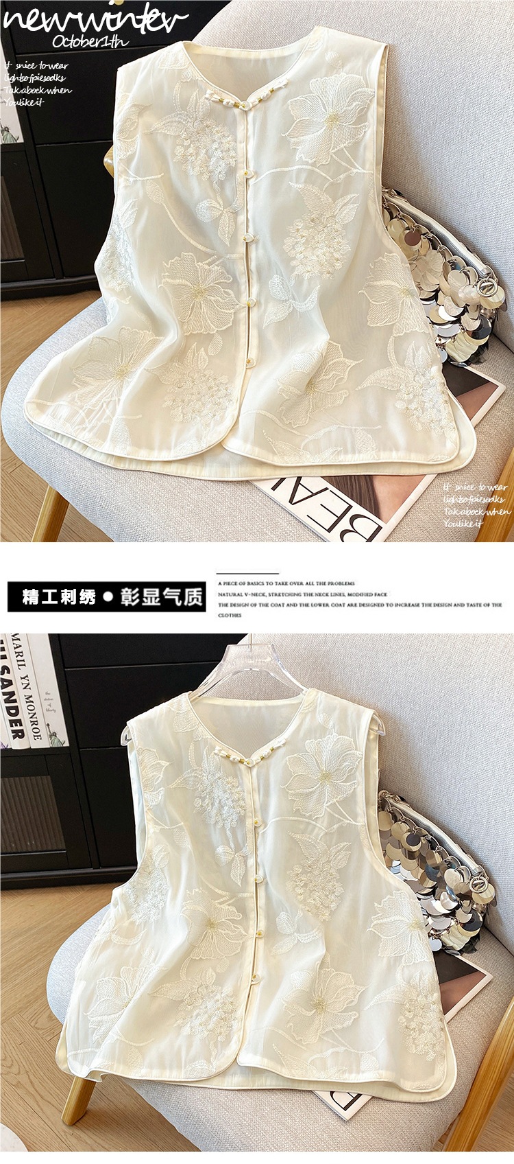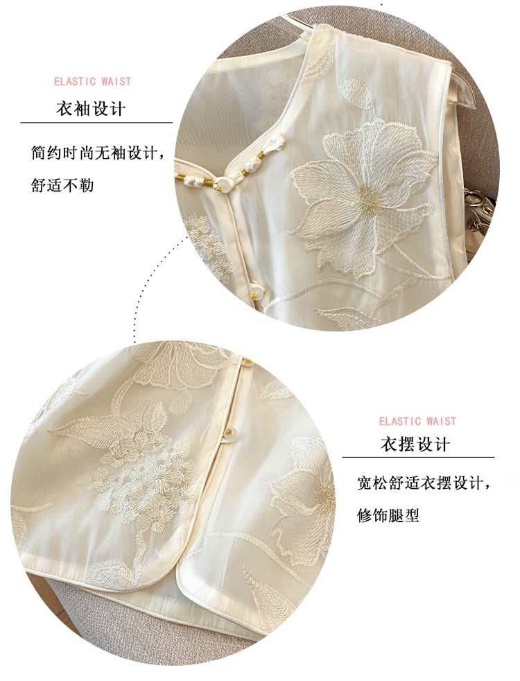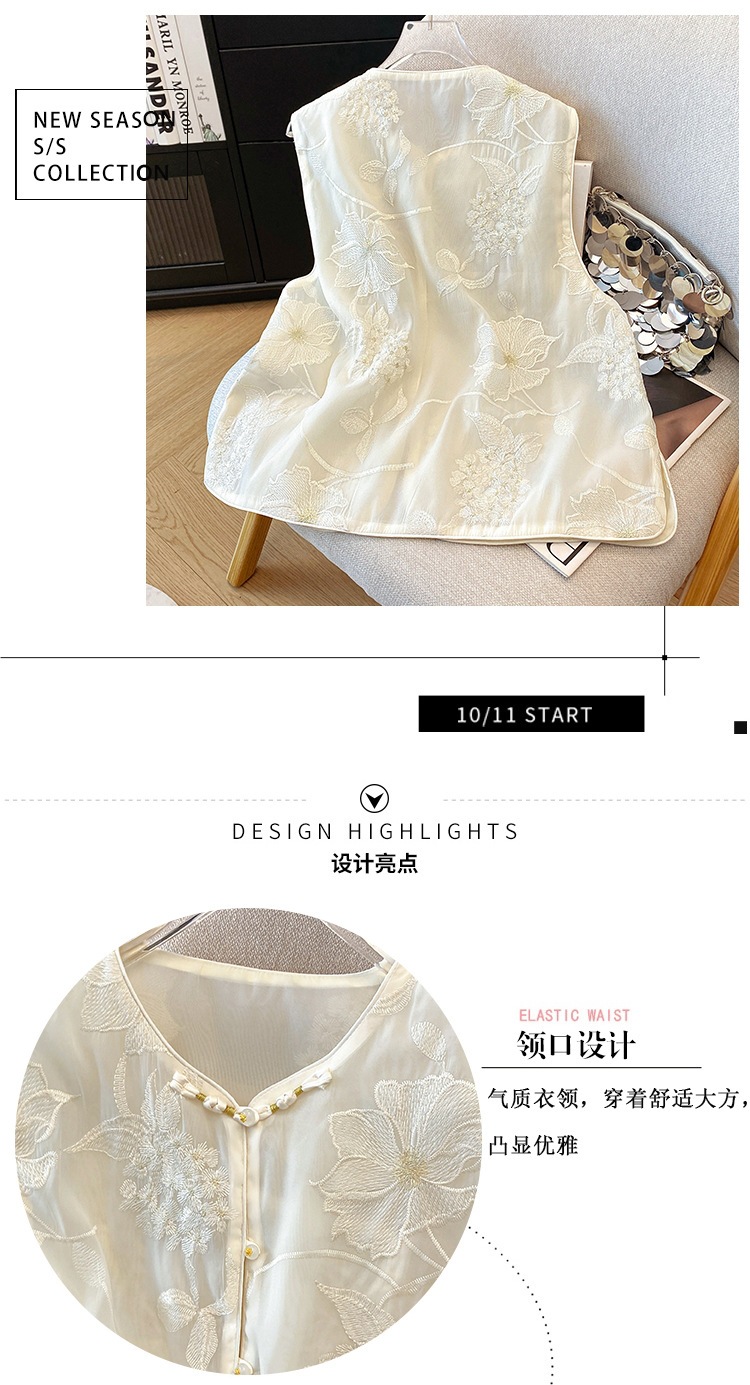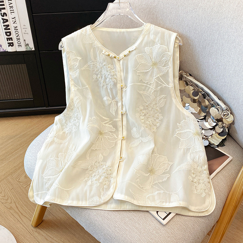 여성을 위한 새로운 중국 스타일의 버튼 자수 조끼, 여름 조끼, 여성스러운 기질, 아름다운 틈새 디자인 탑