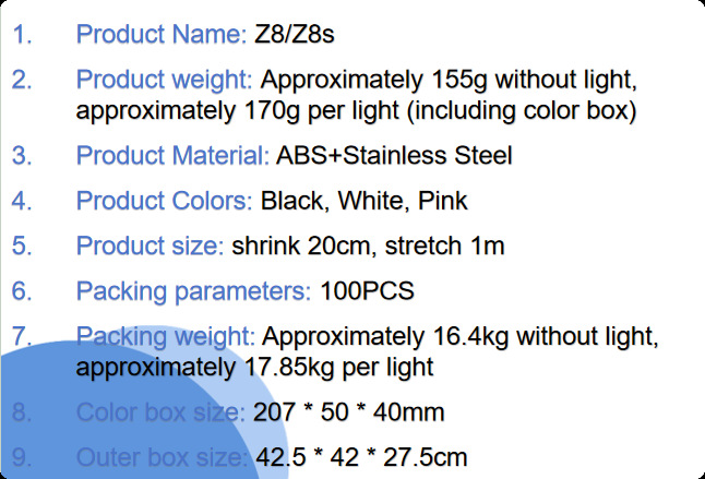 • Z8s 단일 조명 버전 흰색 [ 1m + 블루투스 리모컨 + 삼각대 + 보조 조명 1개 ]