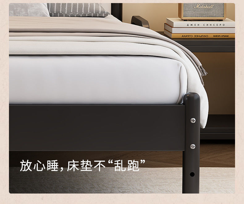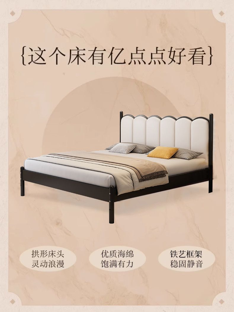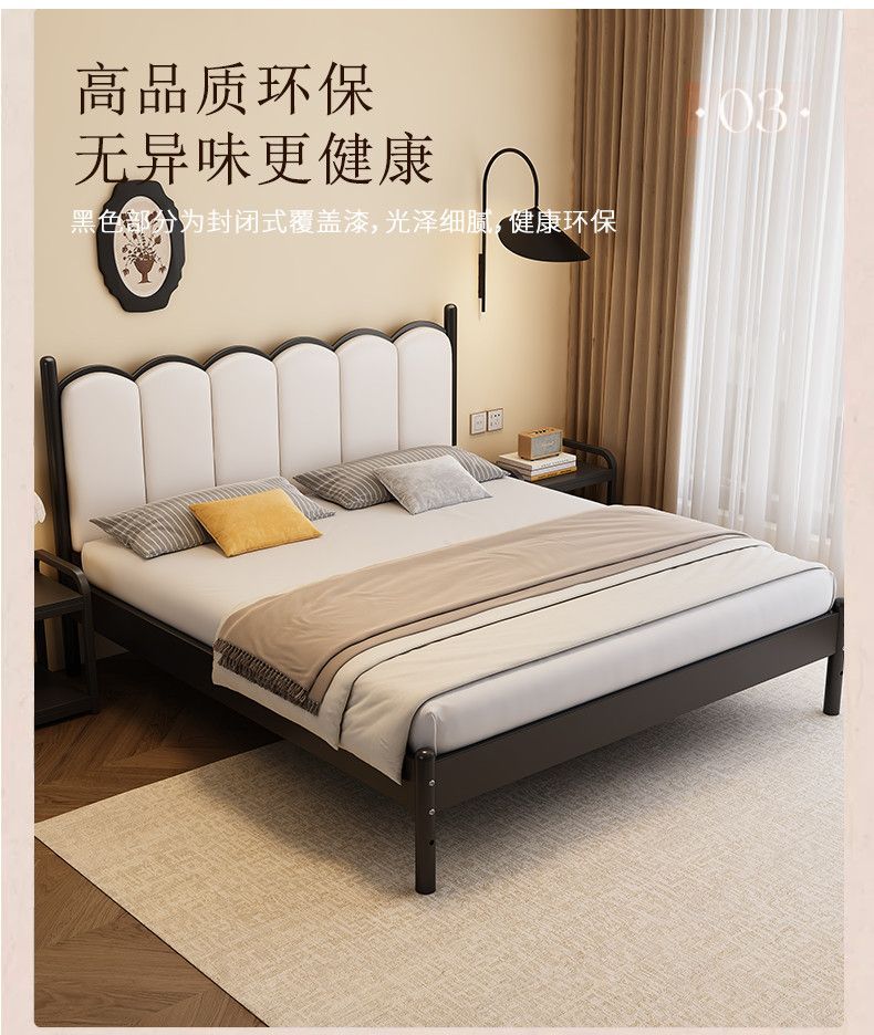 단철 침대 프렌치 크림 초박형 소프트 박스 침대 헤드보드 모던 심플 철제 프레임 침대 더블 무음 홈 침대 싱글 침대