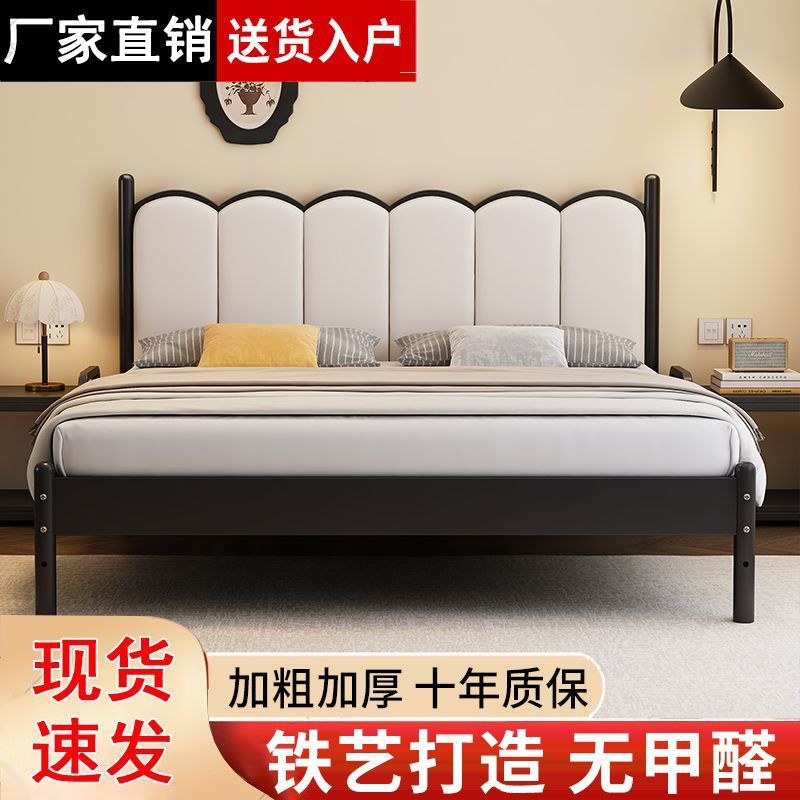 단철 침대 프렌치 크림 초박형 소프트 박스 침대 헤드보드 모던 심플 철제 프레임 침대 더블 무음 홈 침대 싱글 침대스토어 가기