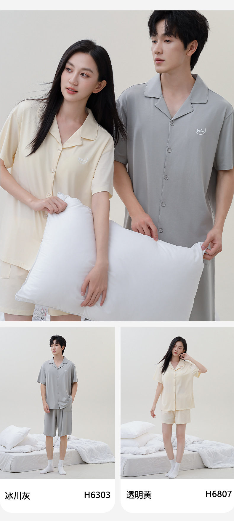 새로운 렌징 모달 잠옷 여성 여름 카디건 반팔 커플 홈웨어 세트 여성용 간단한 웨어러블 잠옷