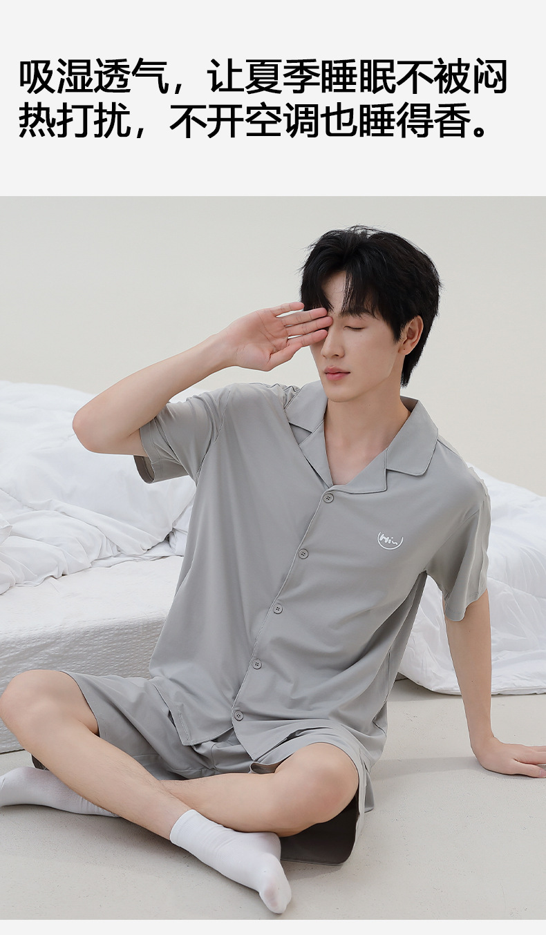 새로운 렌징 모달 잠옷 여성 여름 카디건 반팔 커플 홈웨어 세트 여성용 간단한 웨어러블 잠옷스토어 가기