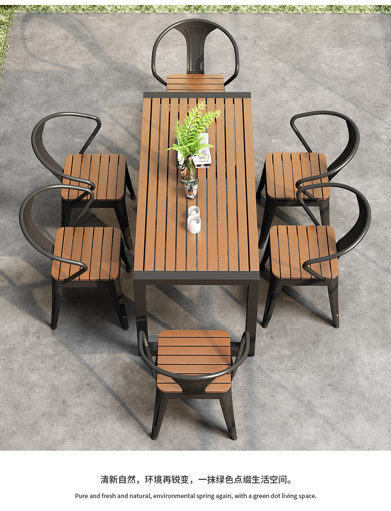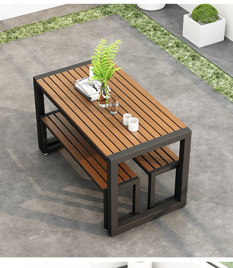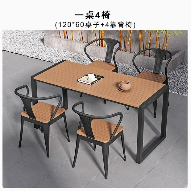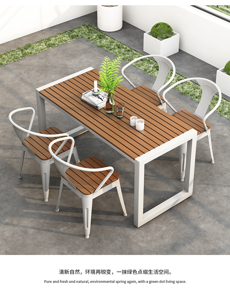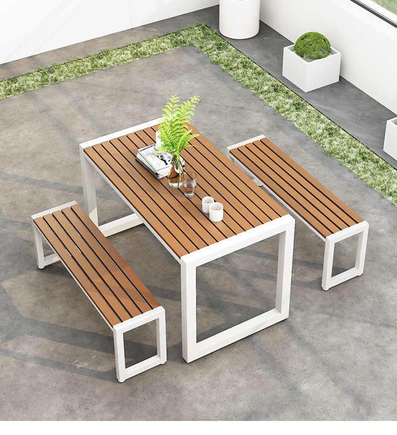 야외 식탁 방수 및 자외선 차단 플라스틱 목재 식탁과 의자 조합 간단한 야외 발코니 작은 테이블과 의자 정원 안뜰 레저