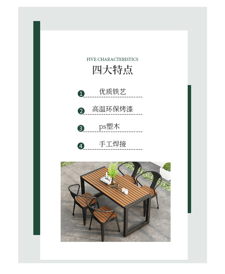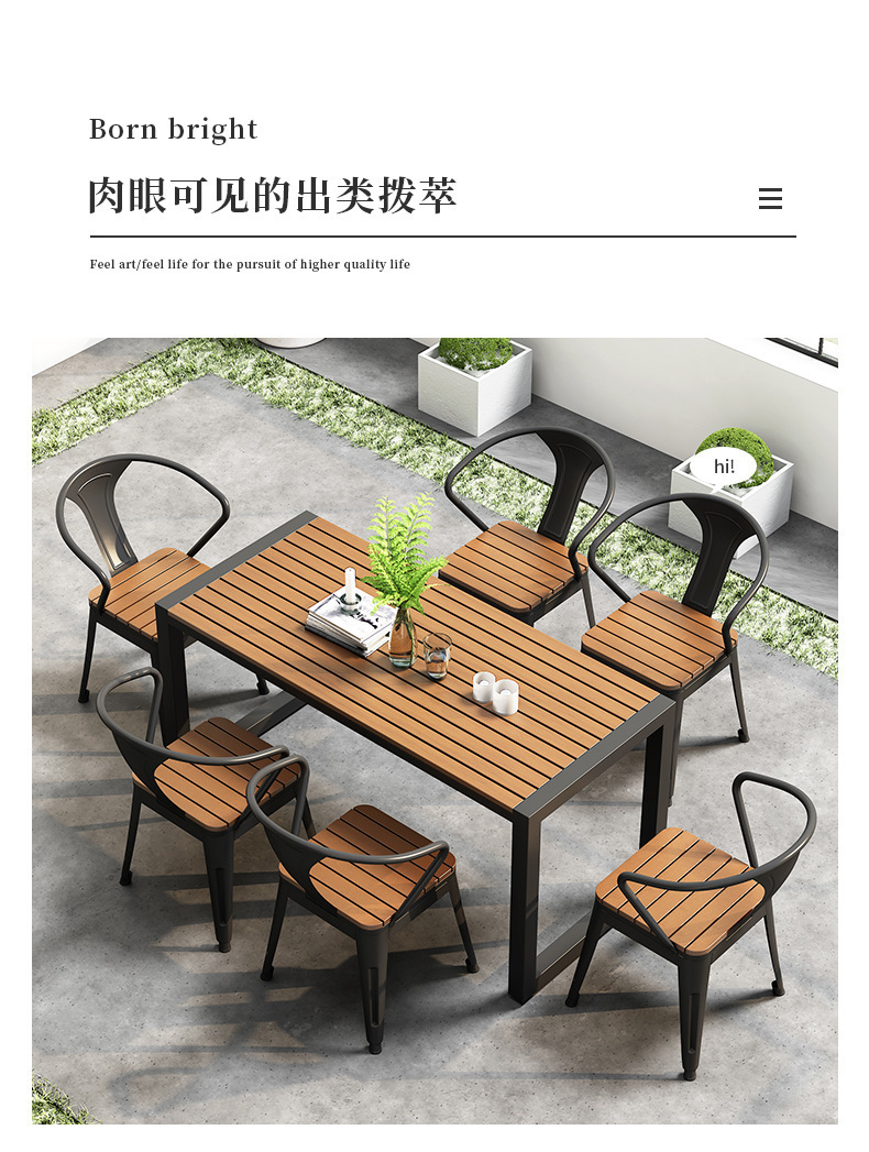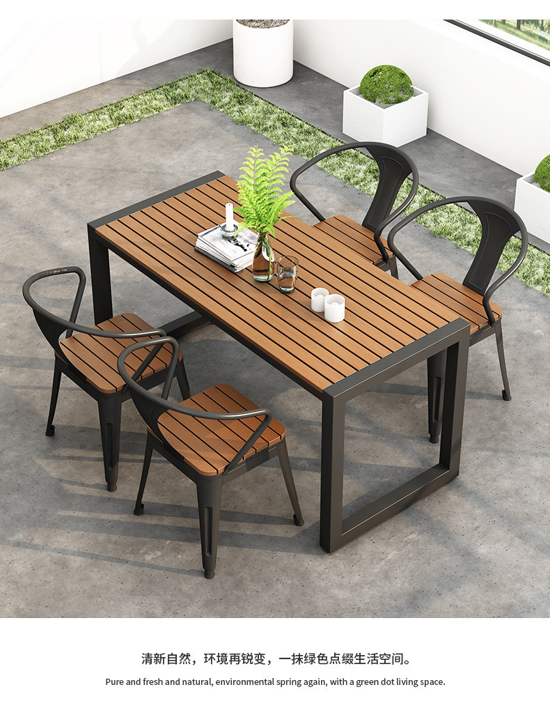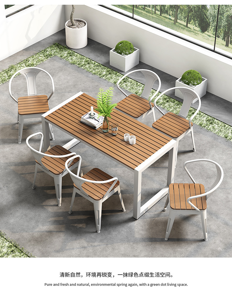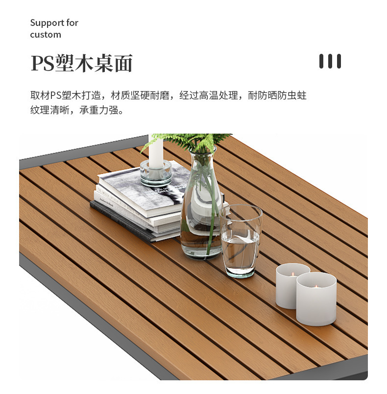 야외 식탁 방수 및 자외선 차단 플라스틱 목재 식탁과 의자 조합 간단한 야외 발코니 작은 테이블과 의자 정원 안뜰 레저스토어 가기