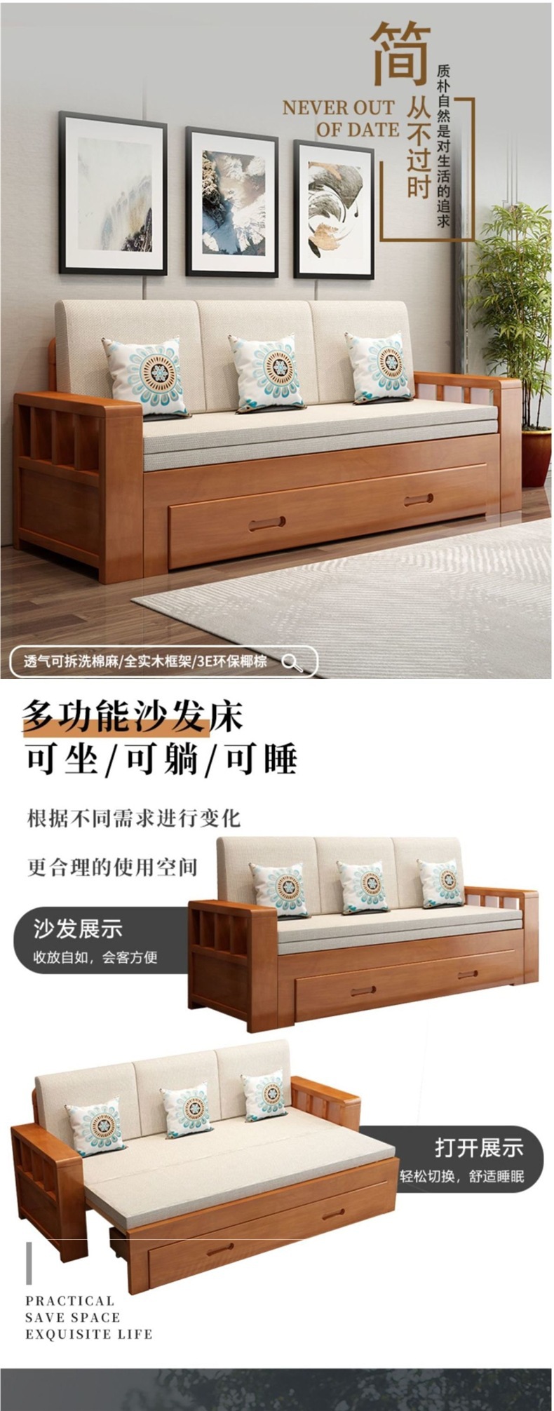 완전 원목 소파 베드 수납 텔레스코픽 좌석 및 침대 거실 다기능 접이식 탈부착 및 세탁 가능한 소파 베드 이중 목적 소형 아파트스토어 가기