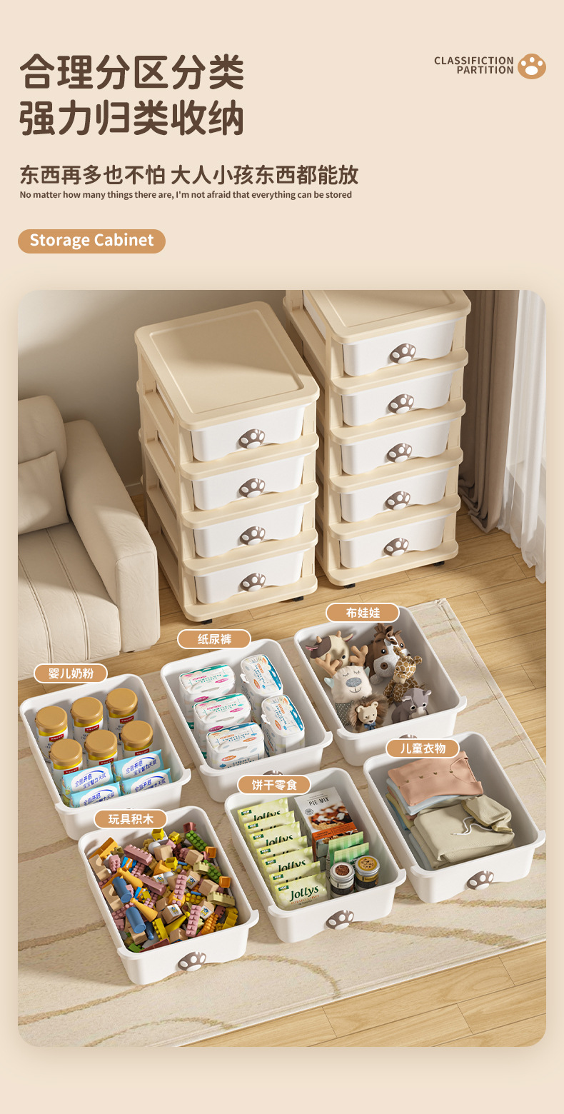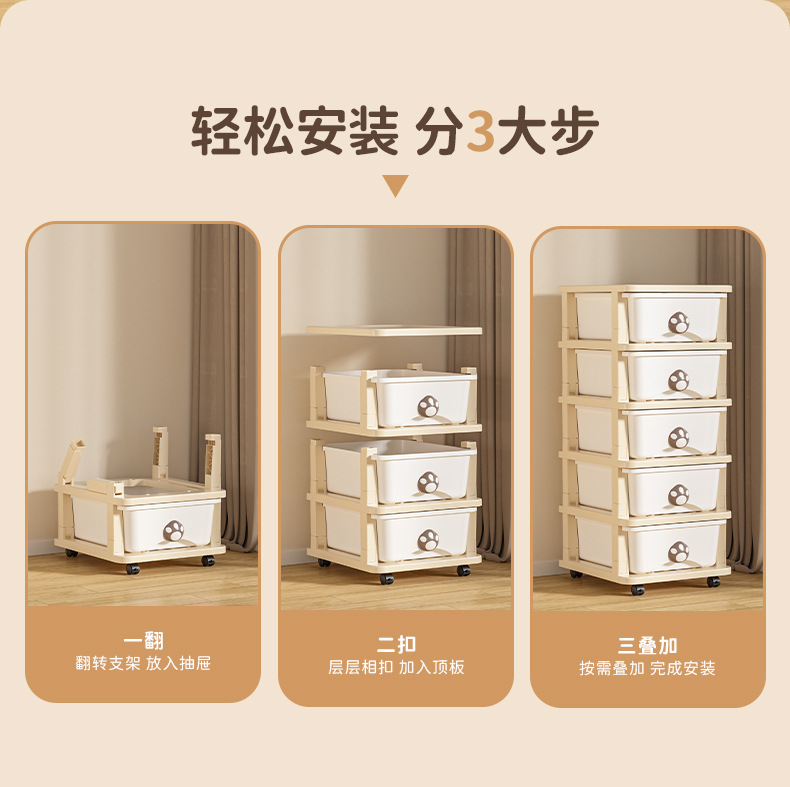 가정용 방진 접이식 보관 캐비닛 설치가 필요없는 스낵 장난감 바퀴가있는 옷 보관 캐비닛 대형 플라스틱 서랍 캐비닛스토어 가기