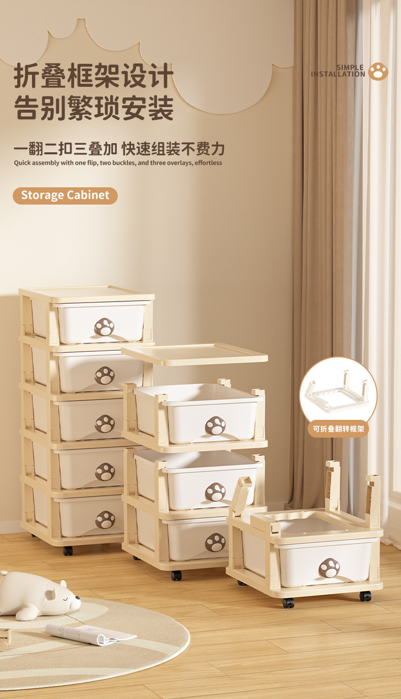 가정용 방진 접이식 보관 캐비닛 설치가 필요없는 스낵 장난감 바퀴가있는 옷 보관 캐비닛 대형 플라스틱 서랍 캐비닛