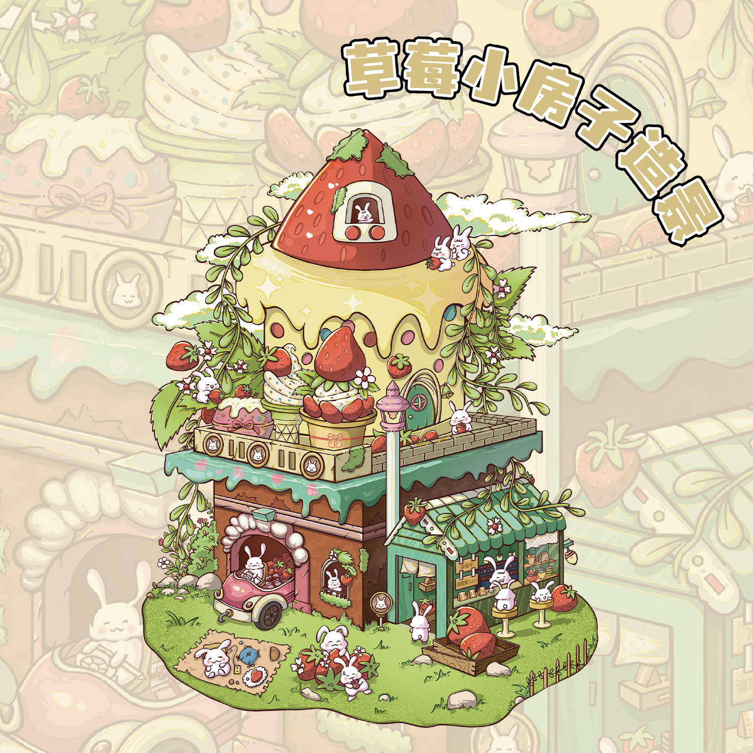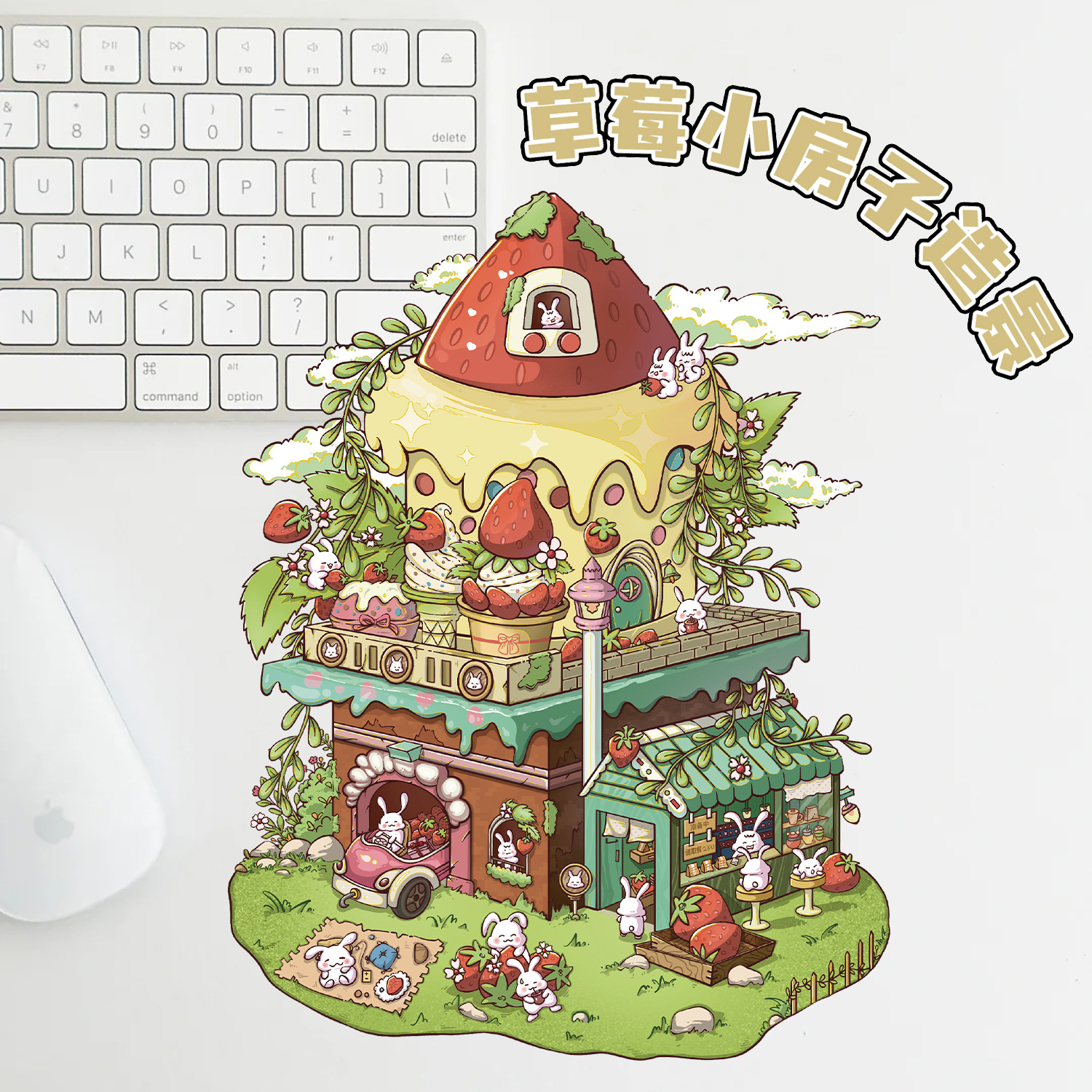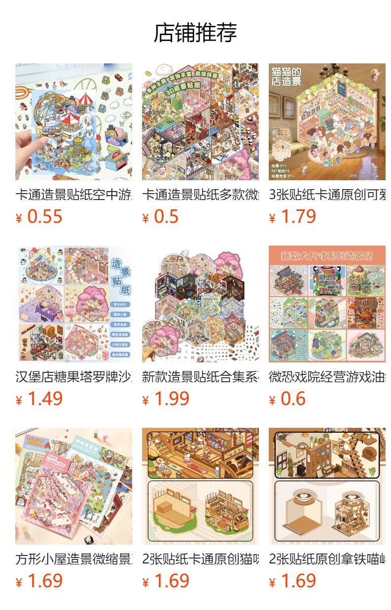 3 딸기 작은 집 토끼 조경 대형 레이아웃 미니어처 풍경 스티커 DIY 스티커 장난감 감압 작은 빨간색 책 스티커스토어 가기