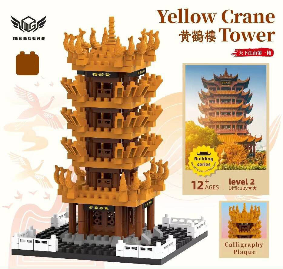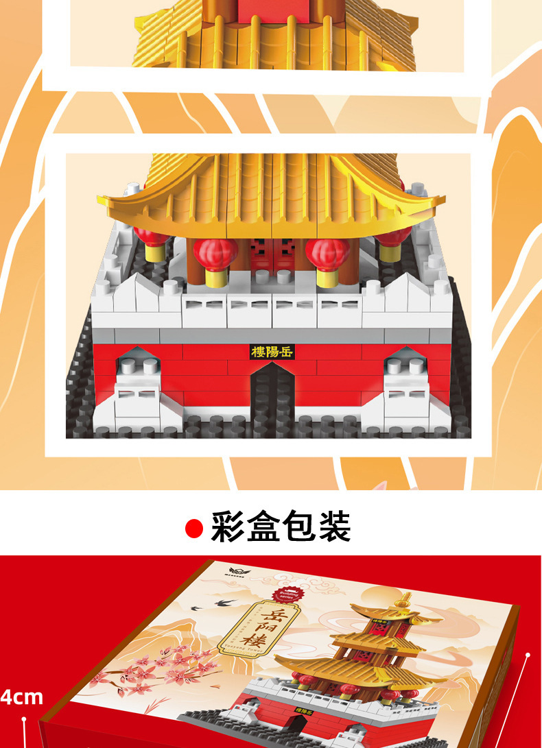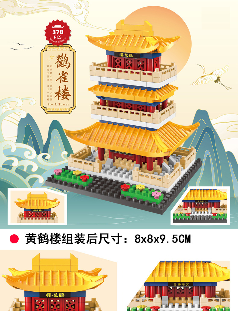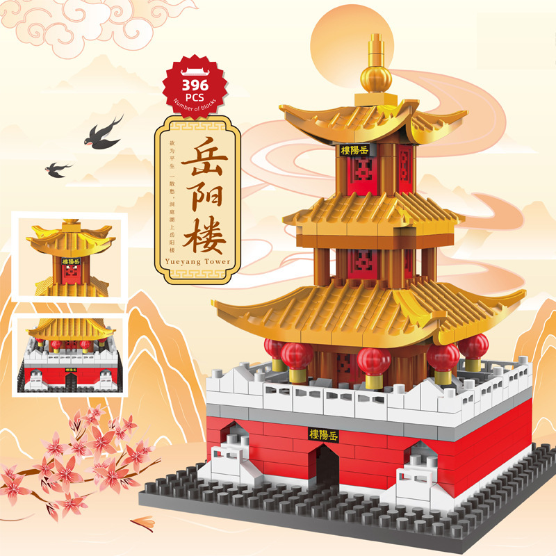 중국 고대 건축물의 네 가지 유명한 건물: Tengwangge, Huanghe, Yueyang, Cangqiao Tower, 소년 소녀를 위한 조립식 교육용 빌딩 블록 장난감스토어 가기