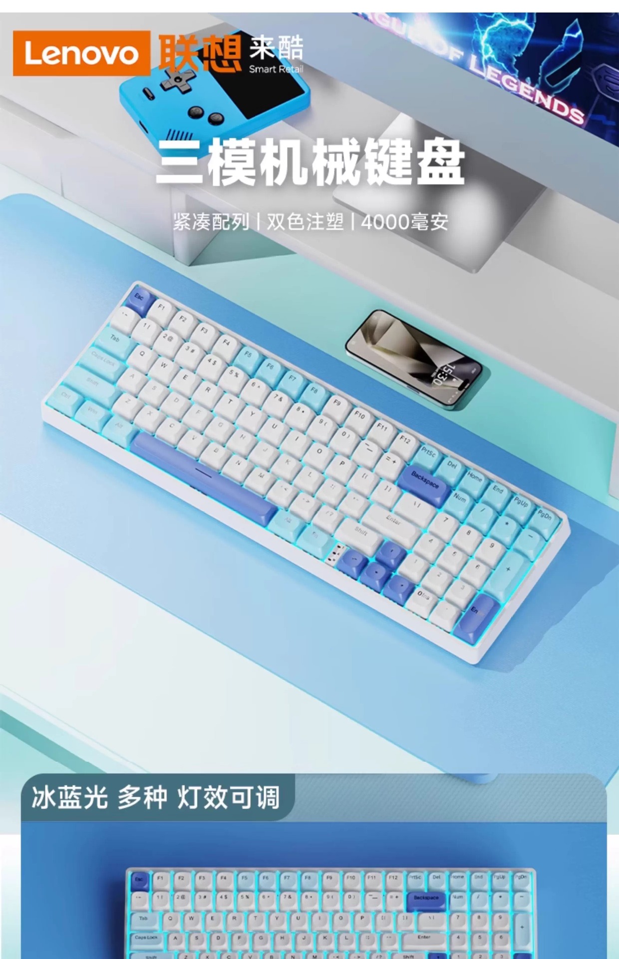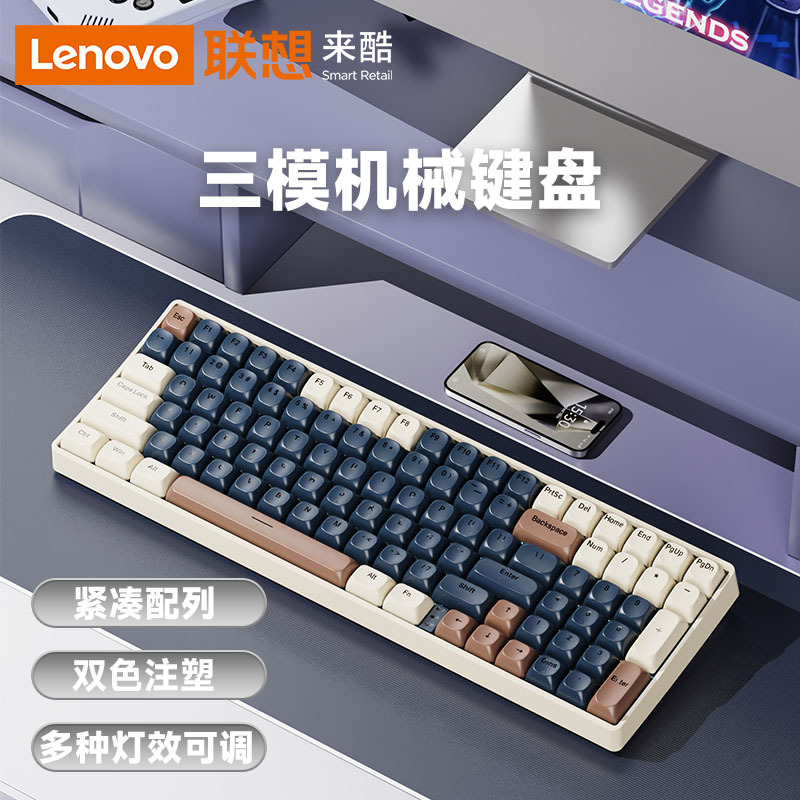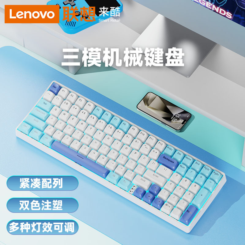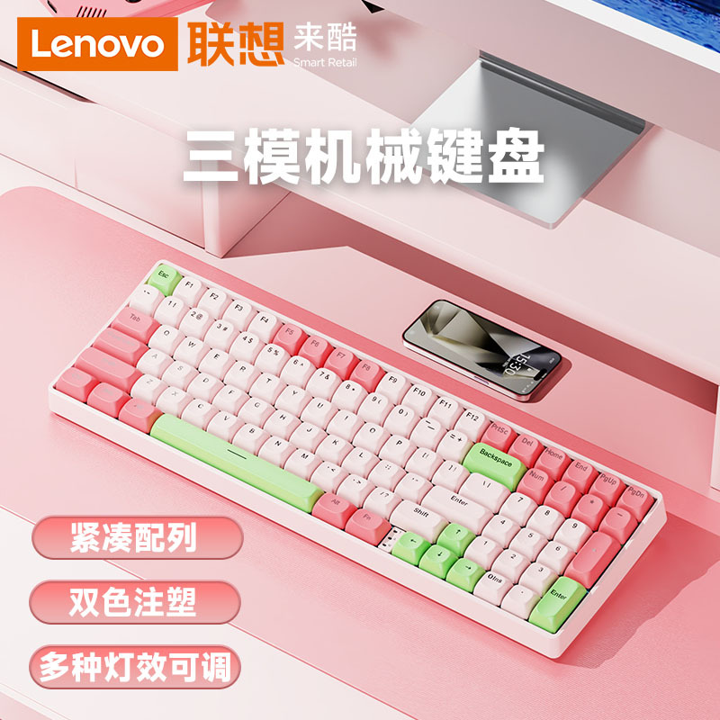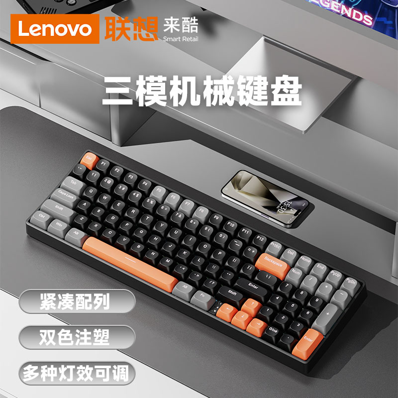 Lenovo 3모드 기계식 키보드, 2색 사출 성형, 풀 키, 핫 스왑 가능, 오래 지속되는 배터리 수명, 고가치 e-스포츠 게임, 가벼운 사운드스토어 가기