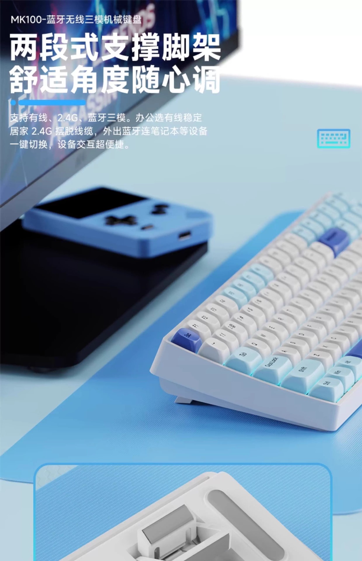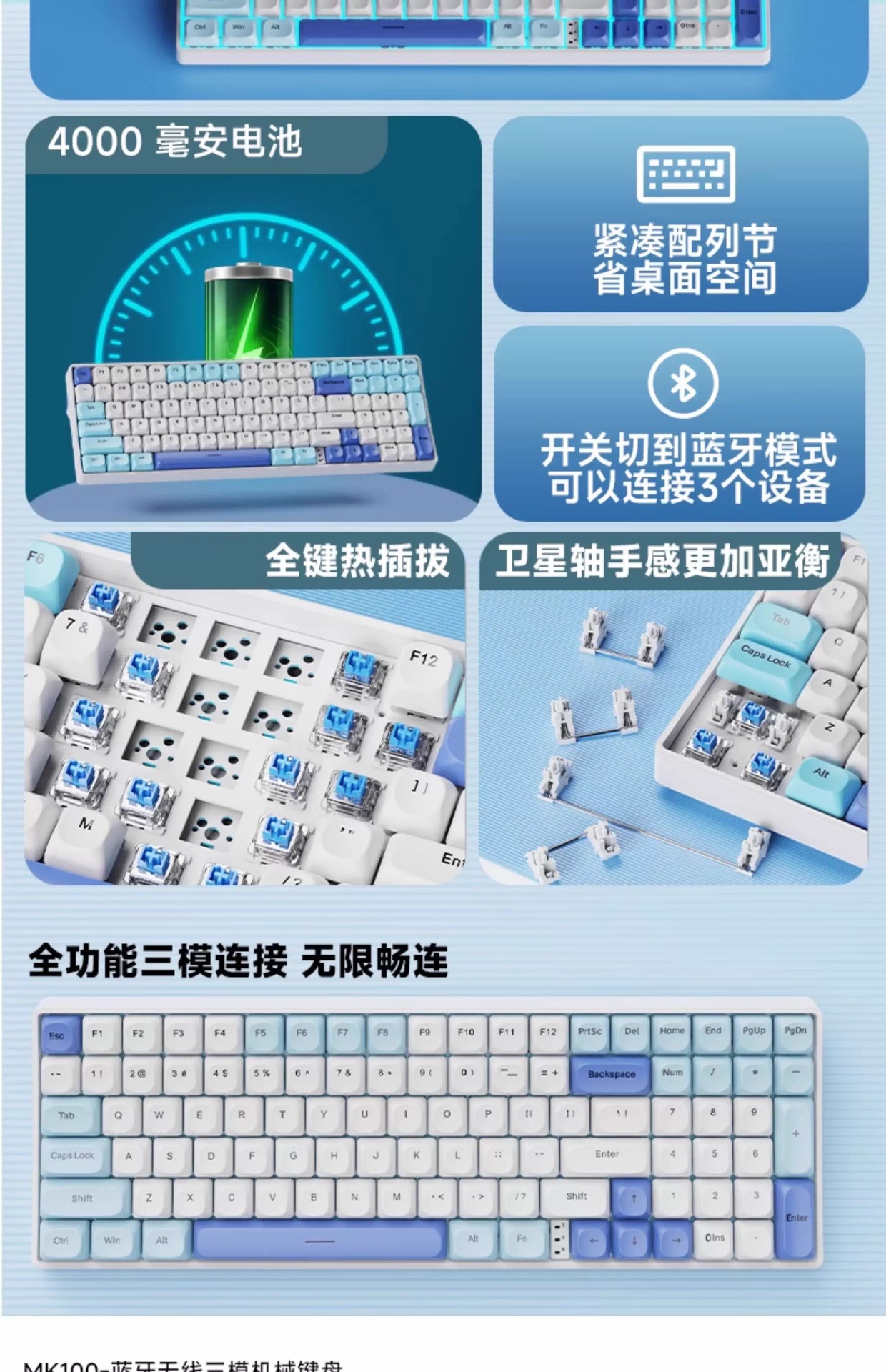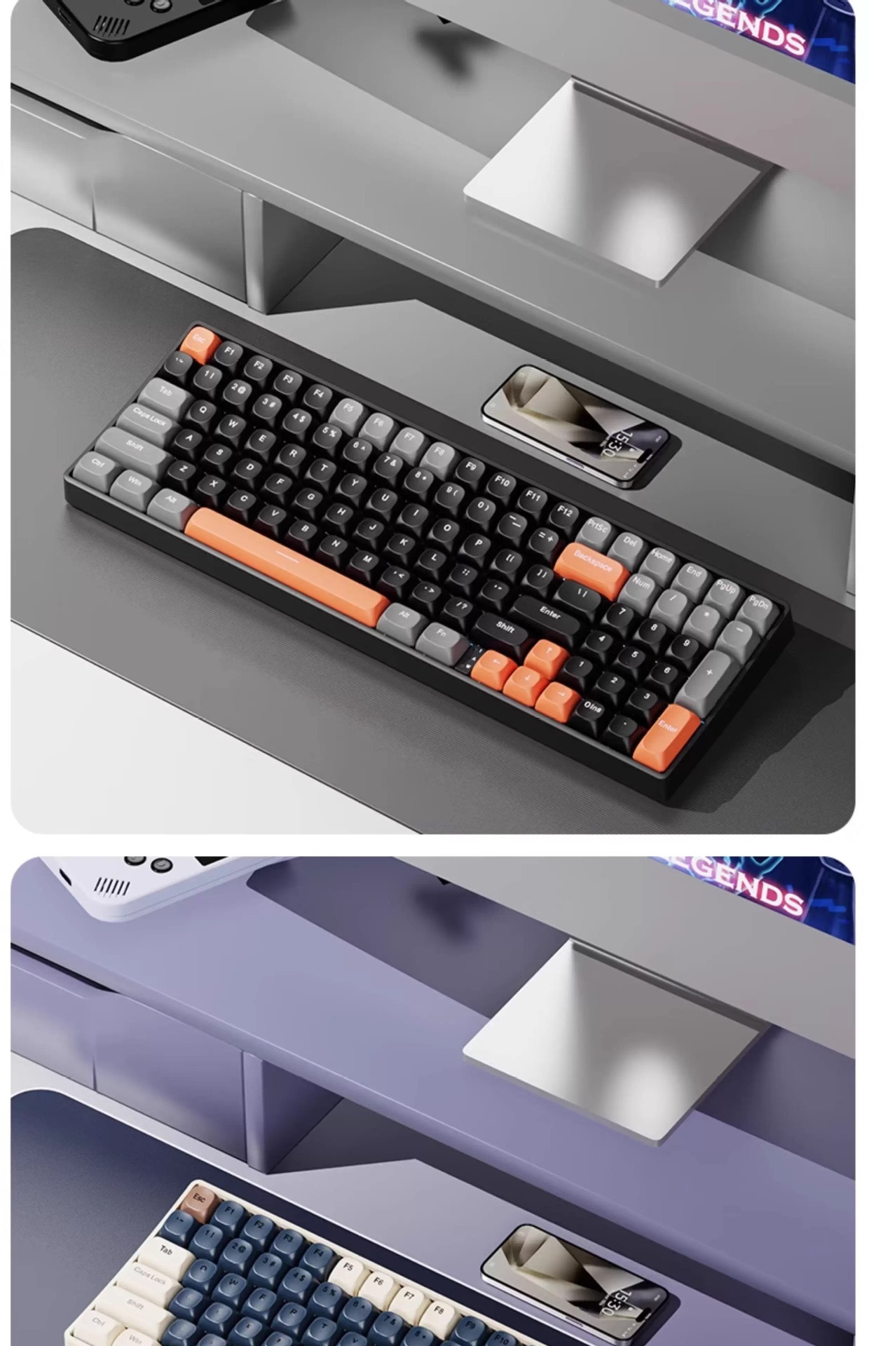 Lenovo 3모드 기계식 키보드, 2색 사출 성형, 풀 키, 핫 스왑 가능, 오래 지속되는 배터리 수명, 고가치 e-스포츠 게임, 가벼운 사운드