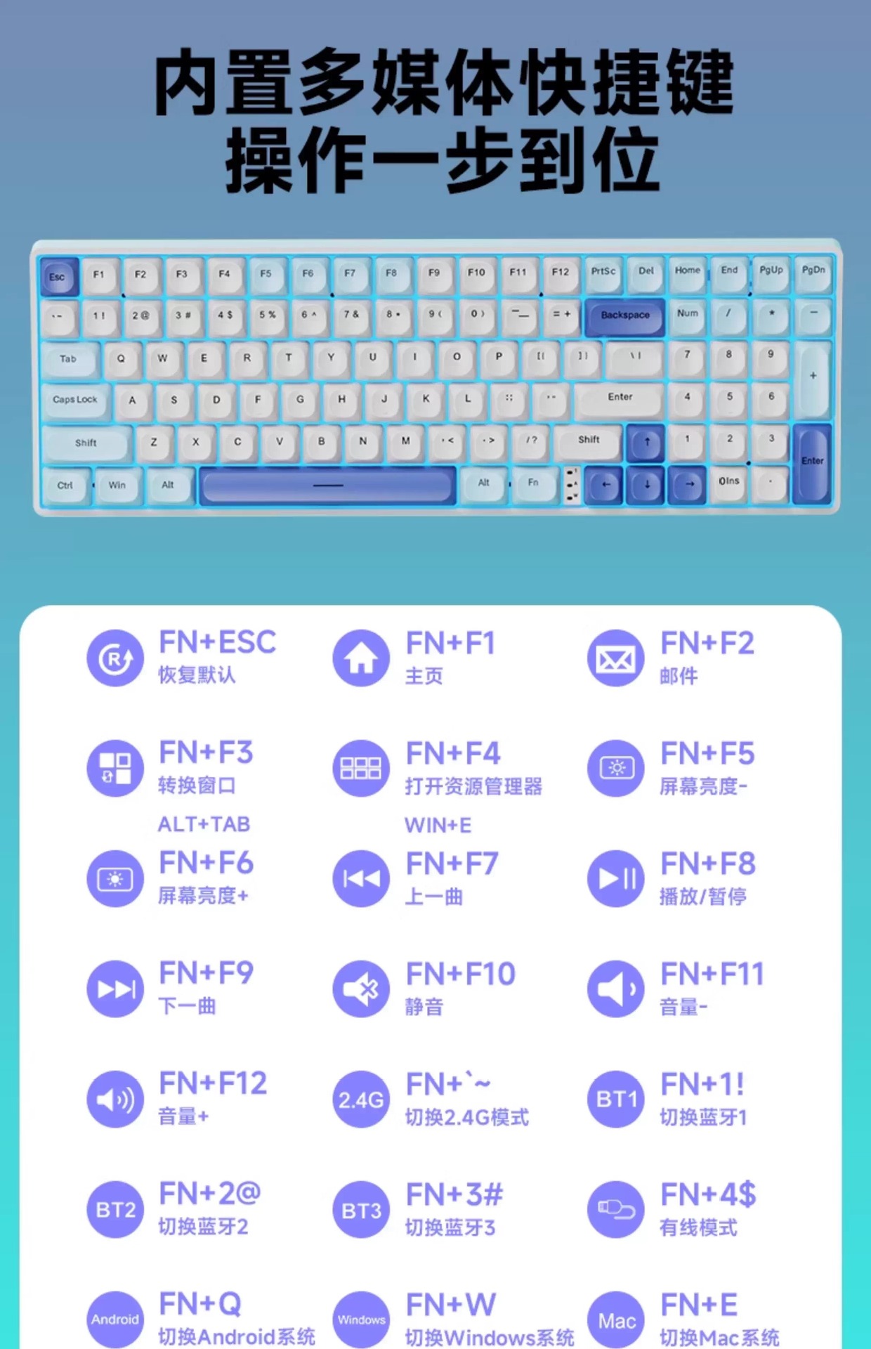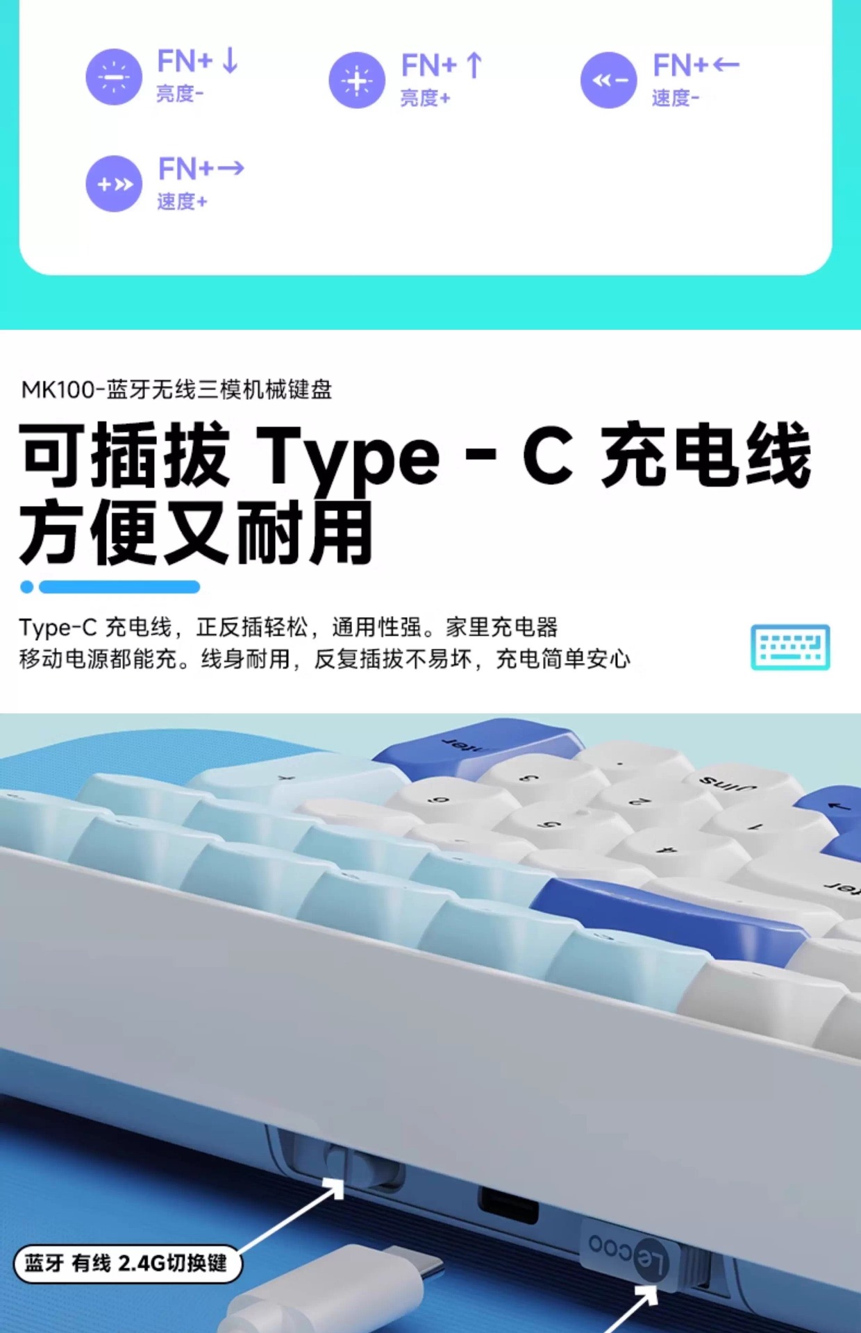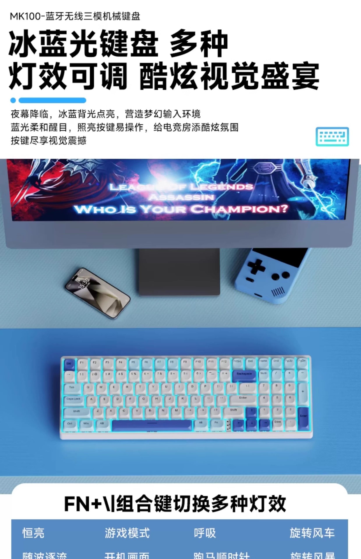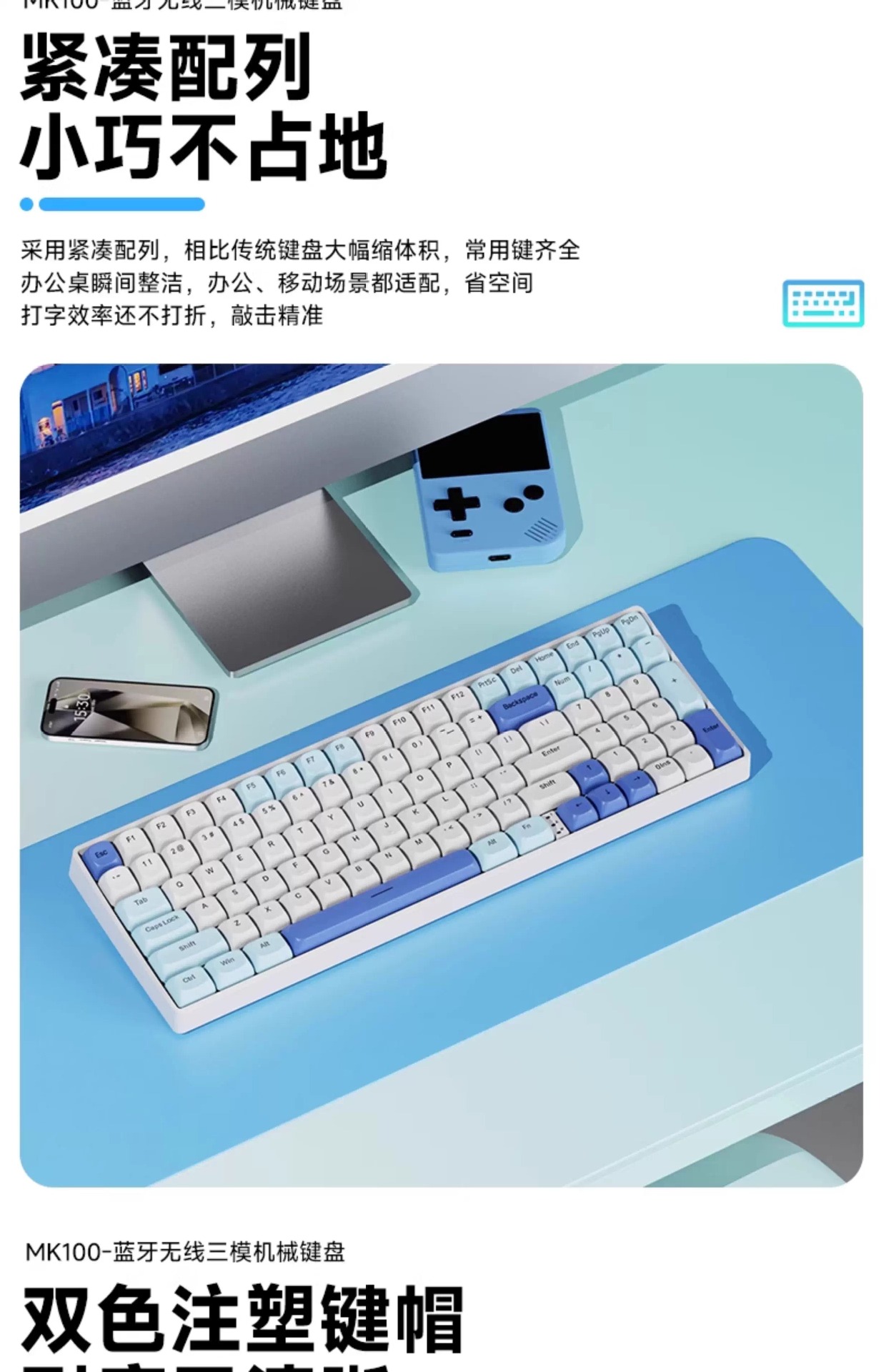Lenovo 3모드 기계식 키보드, 2색 사출 성형, 풀 키, 핫 스왑 가능, 오래 지속되는 배터리 수명, 고가치 e-스포츠 게임, 가벼운 사운드